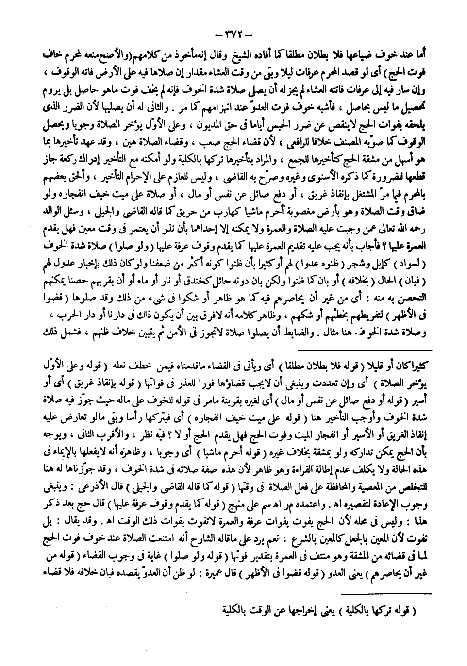 أَمَّا عِنْدَ خَوْفِ ضَيَاعِهَا فَلَا بُطْلَانَ مُطْلَقًا كَمَا أَفَادَهُ الشَّيْخُ وَقَالَ إنَّهُ مَأْخُوذٌ مِنْ كَلَامِهِمْ.