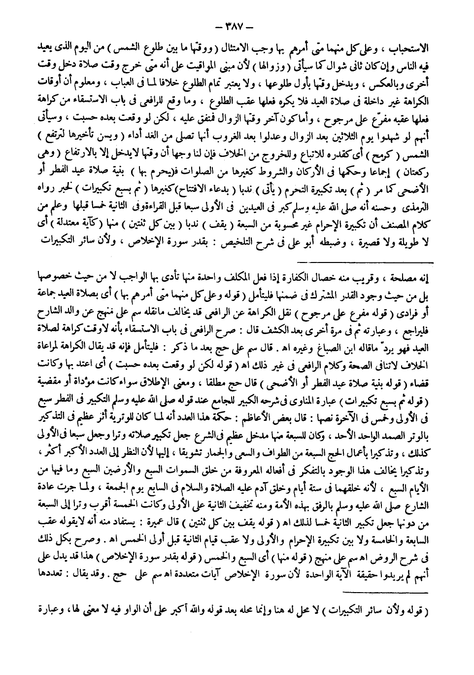 قَوْلُهُ: وَلِأَنَّ سَائِرَ التَّكْبِيرَاتِ) لَا مَحَلَّ لَهُ هُنَا وَإِنَّمَا مَحَلُّهُ بَعْدَ قَوْلِهِ وَاَللَّهُ أَكْبَرُ عَلَى أَنَّ الْوَاوَ فِيهِ لَا مَعْنَى لَهَا، وَعِبَارَةُ