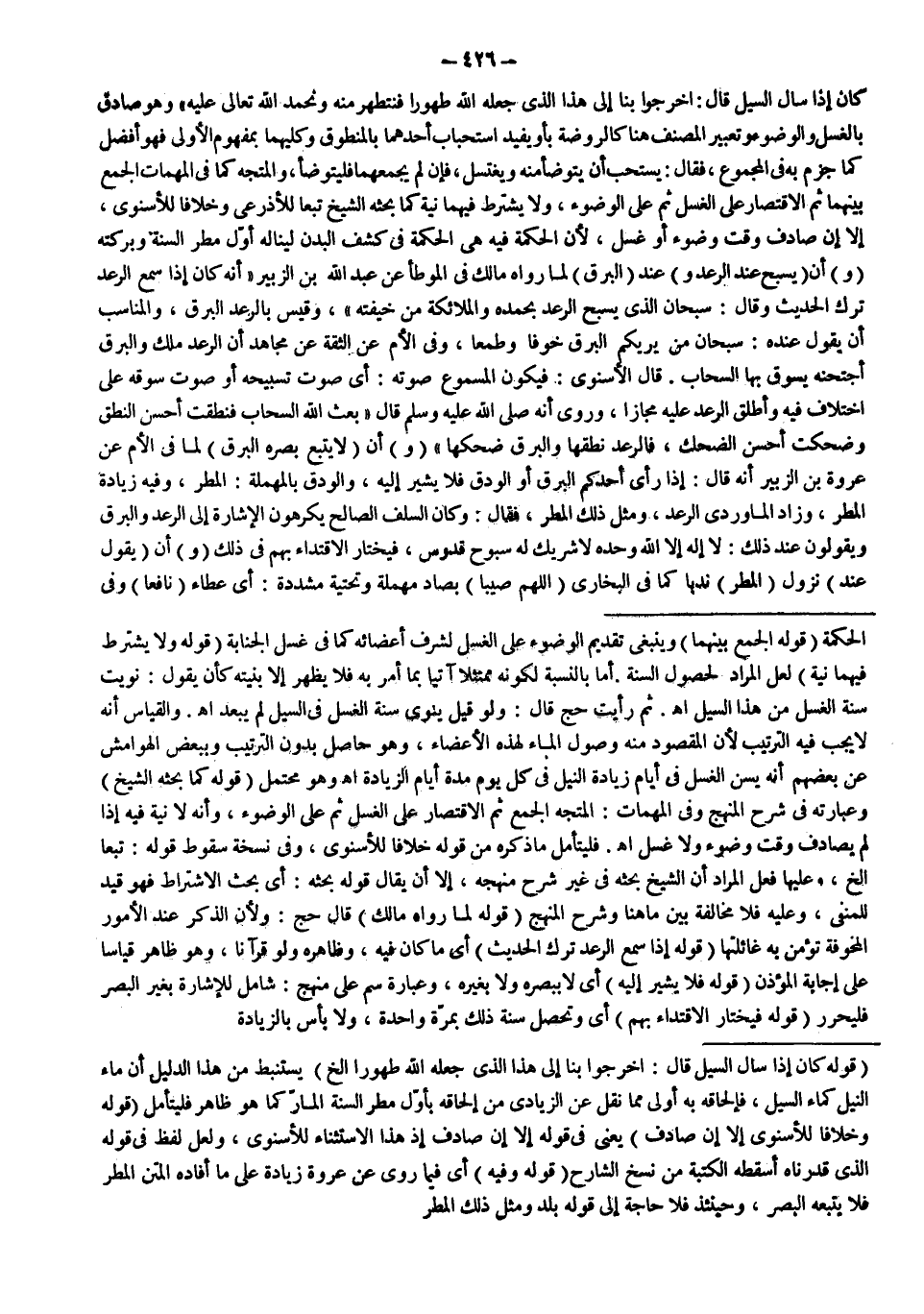 ـــــــــــــــــــــــــــــQقَوْلُهُ: «كَانَ إذَا سَالَ السَّيْلُ قَالَ: اُخْرُجُوا بِنَا إلَى هَذَا الَّذِي جَعَلَهُ اللَّهُ طَهُورًا» إلَخْ) يُسْتَنْبَطُ مِنْ هَذَا الدَّلِيلِ أَنَّ مَاءَ النِّيلِ كَمَاءِ السَّيْلِ، فَإِلْحَاقُهُ بِهِ أَوْلَى مِمَّا نُقِلَ عَنْ الزِّيَادِيِّ مِنْ إلْحَاقِهِ بِأَوَّلِ مَطَرِ السَّنَةِ الْمَارِّ كَمَا هُوَ ظَاهِرٌ فَلْيُتَأَمَّلْ (قَوْلُهُ: وَخِلَافًا لِلْإِسْنَوِيِّ إلَّا إنْ صَادَفَ) يَعْنِي فِي قَوْلِهِ إلَّا إنْ صَادَفَ إذْ هَذَا الِاسْتِثْنَاءُ لِلْإِسْنَوِيِّ، وَلَعَلَّ لَفْظَ فِي قَوْلِهِ الَّذِي قَدَّرْنَاهُ أَسْقَطَهُ الْكَتَبَةُ مِنْ نُسَخِ الشَّارِحِ (قَوْلُهُ: وَفِيهِ) أَيْ فِيمَا رُوِيَ عَنْ عُرْوَةَ زِيَادَةٌ عَلَى مَا أَفَادَهُ الْمَتْنُ الْمَطَرُ فَلَا يُتْبِعُهُ الْبَصَرَ، وَحِينَئِذٍ فَلَا حَاجَةَ إلَى قَوْلِهِ بَلَدٍ وَمِثْلُ ذَلِكَ الْمَطَرُ.