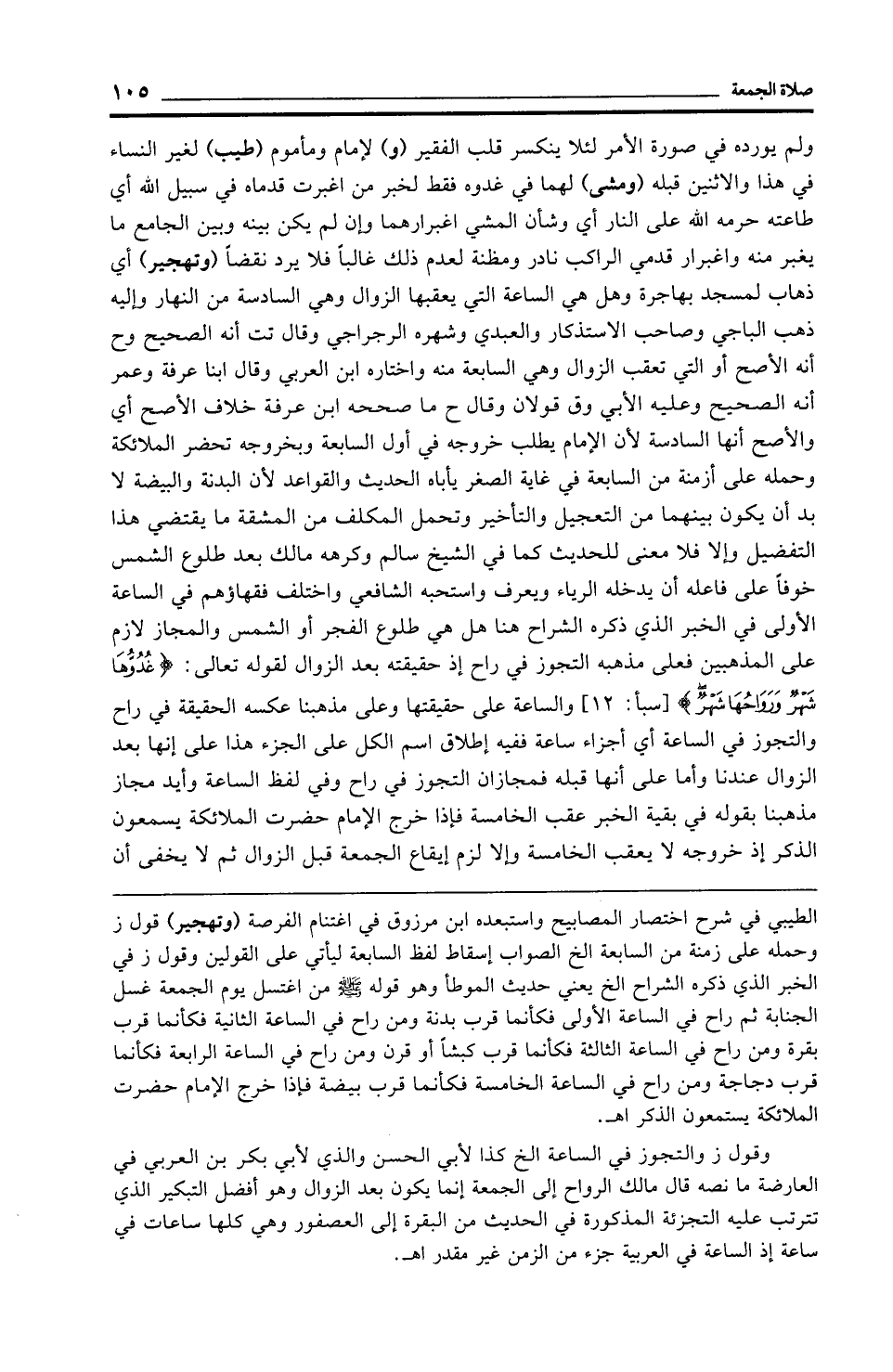 وقول ز والتجوز في الساعة الخ كذا لأبي الحسن والذي لأبي بكر بن العربي في العارضة ما نصه قال مالك الرواح إلى الجمعة إنما يكون بعد الزوال وهو أفضل التبكير الذي تترتب عليه التجزئة المذكورة في الحديث من البقرة إلى العصفور وهي كلها ساعات في ساعة إذ الساعة في العربية جزء من الزمن غير مقدر اهـ.