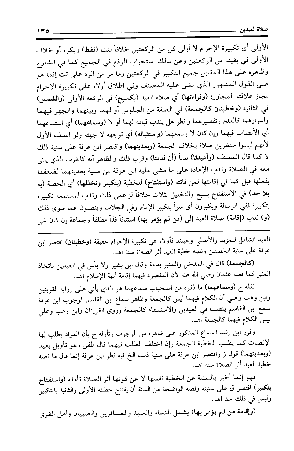 العيد الشامل للمزيد والأصلي وحينئذ فأولاه هي تكبيرة الإحرام حقيقة (وخطبتان) اقتصر ابن عرفة على سنية الخطبتين ونصه خطبة العيد أثر الصلاة سنة اهـ.