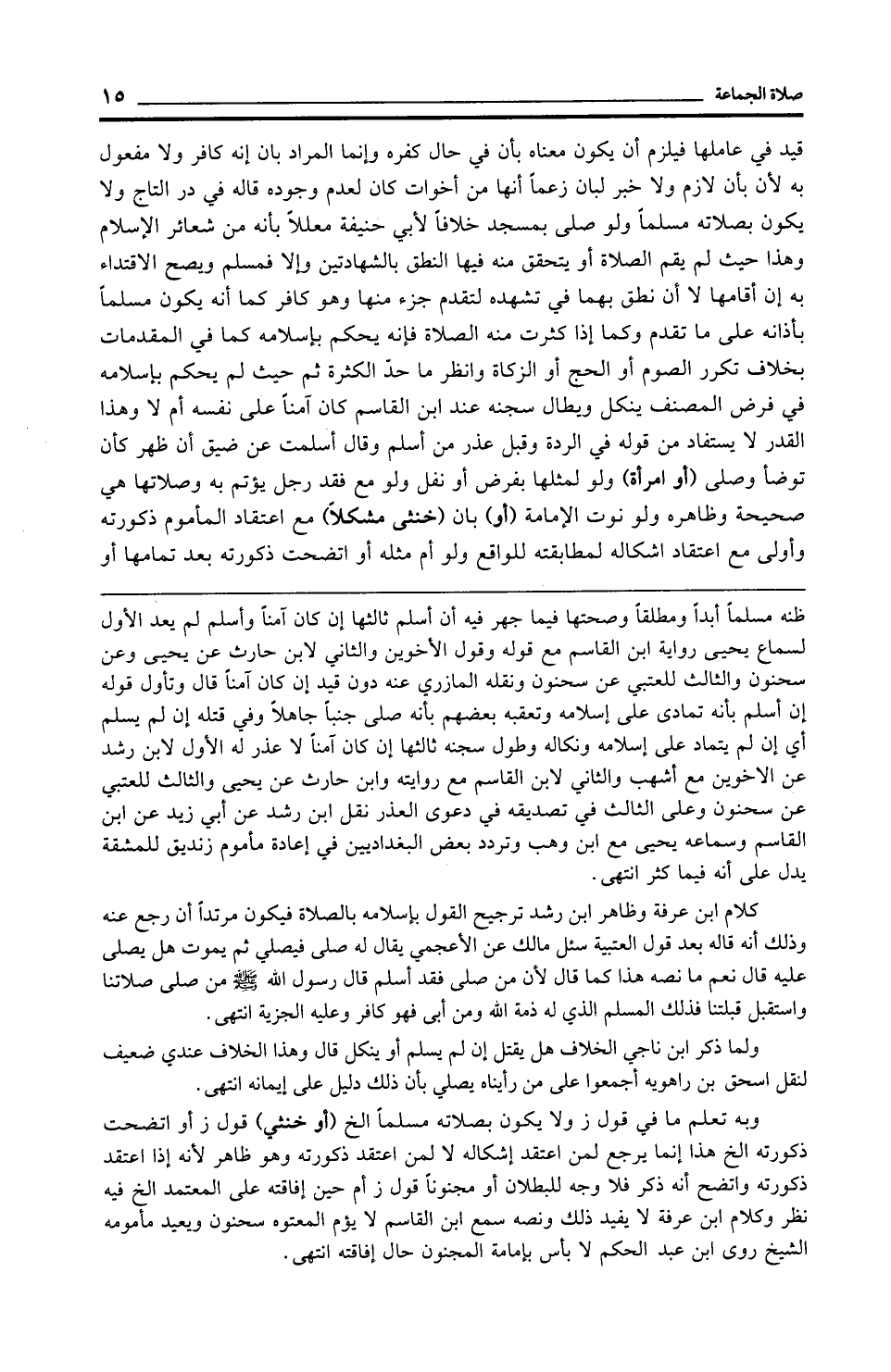 كلام ابن عرفة وظاهر ابن رشد ترجيح القول بإسلامه بالصلاة فيكون مرتدًا أن رجع عنه وذلك أنه قاله بعد قول العتبية سئل مالك عن الأعجمي يقال له صلى فيصلي ثم يموت هل يصلى عليه قال نعم ما نصه هذا كما قال لأن من صلى فقد أسلم قال رسول الله - صلى الله عليه وسلم - من صلى صلاتنا واستقبل قبلتنا فذلك المسلم الذي له ذمة الله ومن أبى فهو كافر وعليه الجزية انتهى.