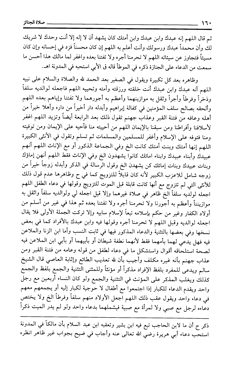 ثم قال اللهم إنه عبدك وابن عبدك وابن أمتك كان يشهد أن لا إله إلا أنت وحدك لا شريك لك وأن محمدًا عبدك ورسولك وأنت أعلم به اللهم إن كان محسنًا فزد في إحسانه وإن كان مسيئًا فتجاوز عن سيئاته اللهم لا تحرمنا أجره ولا تفتنا بعده واغفر لما مالك هذا أحسن ما سمعت من الدعاء على الجنازة ذكره في الموطأ قاله في الأبي استحبه في المدونة اهـ.