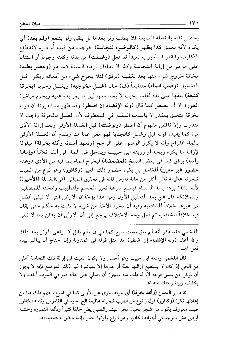 نقله أبو الحسن (وأنفه بخرقة) أي خرقة أخرى غير الأولى كما في ضيح ويفهم ذلك هنا من إعادتها نكرة (وكافور) قول ز نوع من الطيب شجرته عظيمة الخ نحوه في القاموس ونصه الكافور طيب معروف يكون من شجر بجبال بحر الهند والصين يظل خلقًا كثيرًا وتألفه النمورة وخشبه أبيض هش ويوجد في أجوافه الكافور وهو أنواع ولونها أحمر وإنما يبيض بالتصعيد اهـ.