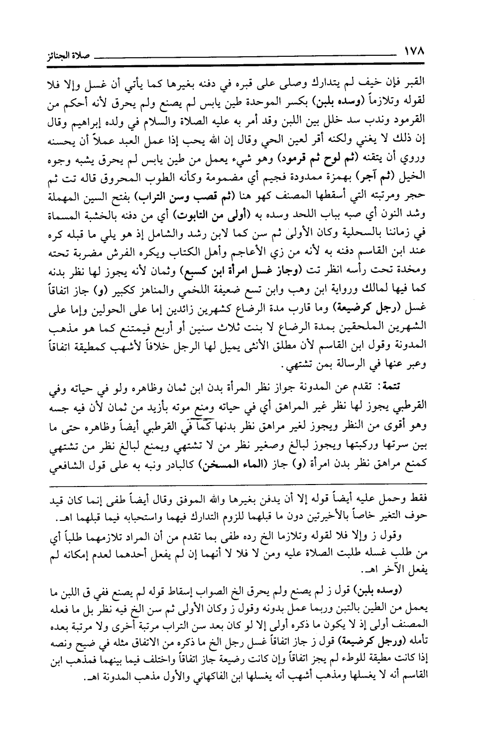 (وسده بلبن) قول ز لم يصنع ولم يحرق الخ الصواب إسقاط قوله لم يصنع ففي ق اللبن ما يعمل من الطين بالتبن وربما عمل بدونه وقول ز وكان الأولى ثم سن الخ فيه نظر بل ما فعله المصنف أولى إذ لا يكون ما ذكره أولى إلا لو كان بعد سن التراب مرتبة أخرى ولا مرتبة بعده تأمله (ورجل كرضيعة) قول ز جاز اتفاقًا غسل رجل الخ ما ذكره من الاتفاق مثله في ضيح ونصه إذا كانت مطيقة للوطء لم يجز اتفاقًا وإن كانت رضيعة جاز اتفاقًا واختلف فيما بينهما فمذهب ابن القاسم أنه لا يغسلها ومذهب أشهب أنه يغسلها ابن الفاكهاني والأول مذهب المدونة اهـ.