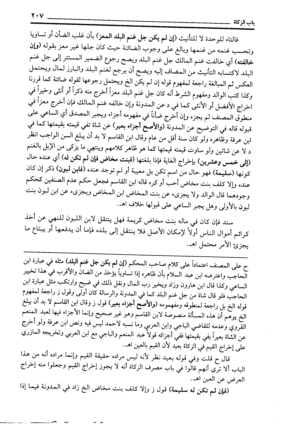 ح على المصنف اعتمادًا على كلام صاحب المحكم (إن لم يكن جل غنم البلد) مثله في عبارة ابن الحاجب واعترضه ابن عبد السلام بأن ظاهره إذا تساويًا يؤخذ من الضأن والأقرب في هذا تخيير الساعي وكذا قال ابن هارون وزاد ويخير رب المال ونقل ذلك في ضيح وارتكب مثل عبارة ابن الحاجب فلو قال شاة من جل غنم البلد كما في المدونة والرسالة كان أولى وقول ز راجعة لمفهوم قوله الخ بل راجعة لمنطوقه ومفهمومه (والأصح أجزاء بعير) قول ز وقال ابن القاسم لا بد أن يبلغ الخ يوهم أن هذه المسألة منصوصة لابن القاسم وهو غير صحيح وإنما الأجزاء فيها لعبد المنعم القروي وعدمه للقاضي الباجي وابن العربي وما نسبه لأحمد ليس فيه ونص ابن عرفة ولو أخرج عن الشاة بعيرًا يفي بقيمتها ففي أجزائه قولًا عبد المنعم والباجي مع ابن العربي وتخريجه المازري على إخراج القيم في الزكاة بعيد لأن القيم بالعين اهـ.