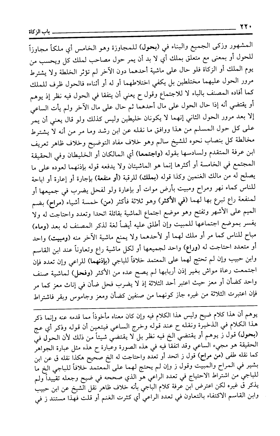 يوهم أن هذا كلام ضيح وليس هذا الكلام فيه وإن كان معناه مأخوذًا مما قدمه عنه وإنما ذكر هذا الكلام في الذخيرة ونقله ح عند قوله وخرج الساعي فيتعين أن قوله وذكر أي عج (بحول) قول ز يوهم أو يقتضي الخ فيه نظر بل لا يقتضي شيئًا من ذلك لأن الحول في الحقيقة هو مجيء الساعي وقد اتفقا فيه في هذه الصورة وعبارة ح هذه مثل عبارة الجواهر كما نقله طفى (من مراح) قول ز اتحد أو تعدد واحتاجت له الخ صحيح هكذا نقله ق عن ابن بشير في المراح والمبيت وقول ز وإن لم يحتج لهما على المعتمد خلافًا للباجي الخ ما للباجي من اشتراط الاحتياج في تعدد الراعي هو الذي صححه في ضيح وجعله تقييدًا ولم يذكر ق غيره لكن اعترض ابن عرفة كلام الباجي بأنه خلاف ظاهر نقل الشيخ عن ابن حبيب وابن القاسم الاكتفاء بالتعاون في تعدد الراعي أي كثرت الغنم أو قلت فهذا مستند ز في