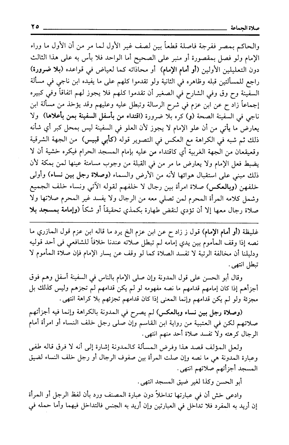 وقال أبو الحسن على قول المدونة وإن صلى الإمام بالناس في السفينة أسفل وهم فوق أجزأهم إذا كان إمامهم قدامهم ما نصه مفهومه لو لم يكن قدامهم لم تجزهم وليس كذلك بل مجزئة ولو لم يكن قدامهم وإنما المعنى إذا كان قدامهم تجزئهم بلا كراهة انتهى.