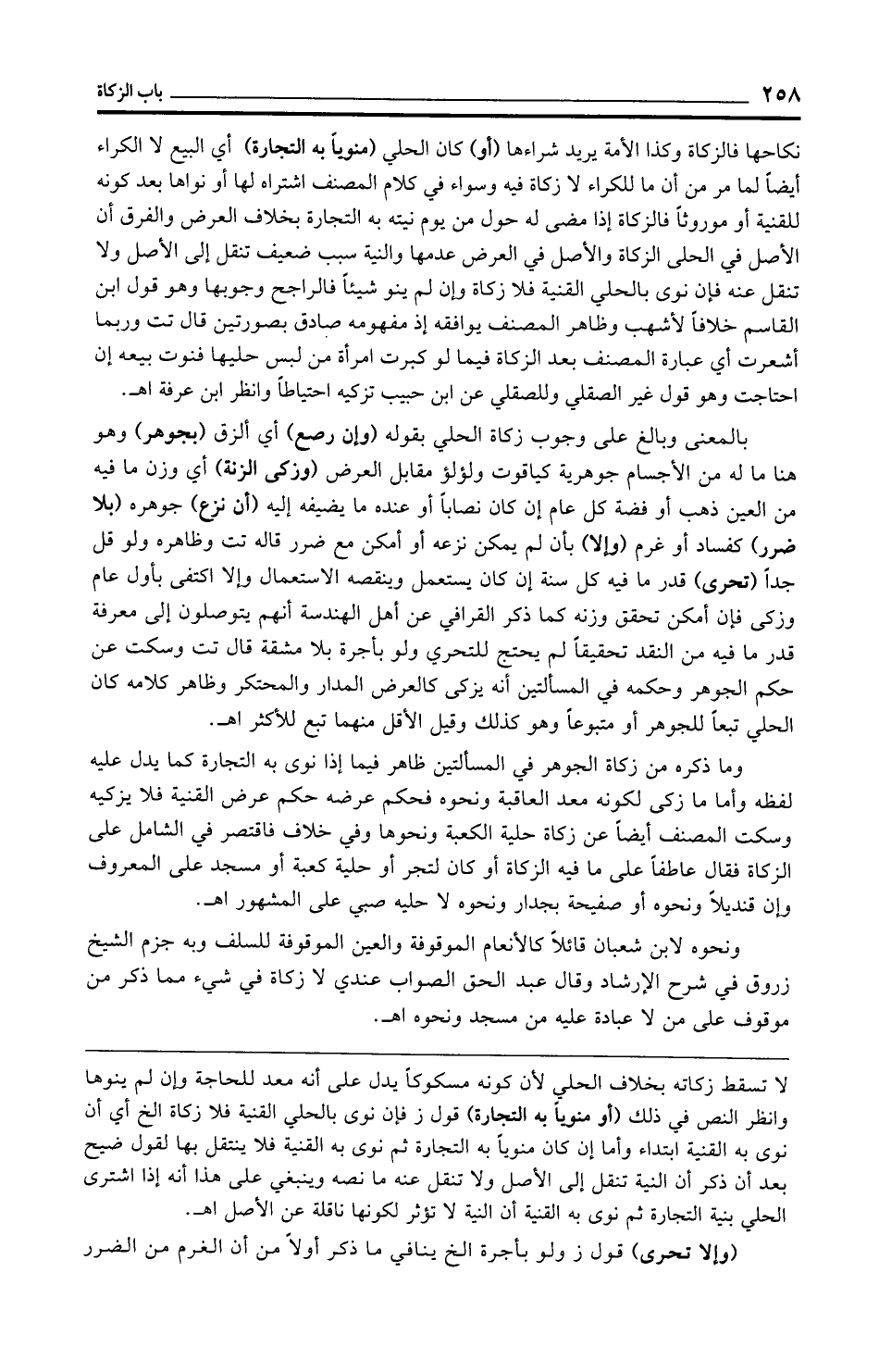 وما ذكره من زكاة الجوهر في المسألتين ظاهر فيما إذا نوى به التجارة كما يدل عليه لفظه وأما ما زكى لكونه معد العاقبة ونحوه فحكم عرضه حكم عرض القنية فلا يزكيه وسكت المصنف أيضًا عن زكاة حلية الكعبة ونحوها وفي خلاف فاقتصر في الشامل على الزكاة فقال عاطفًا على ما فيه الزكاة أو كان لتجر أو حلية كعبة أو مسجد على المعروف وإن قنديلًا ونحوه أو صفيحة بجدار ونحوه لا حليه صبي على المشهور اهـ.