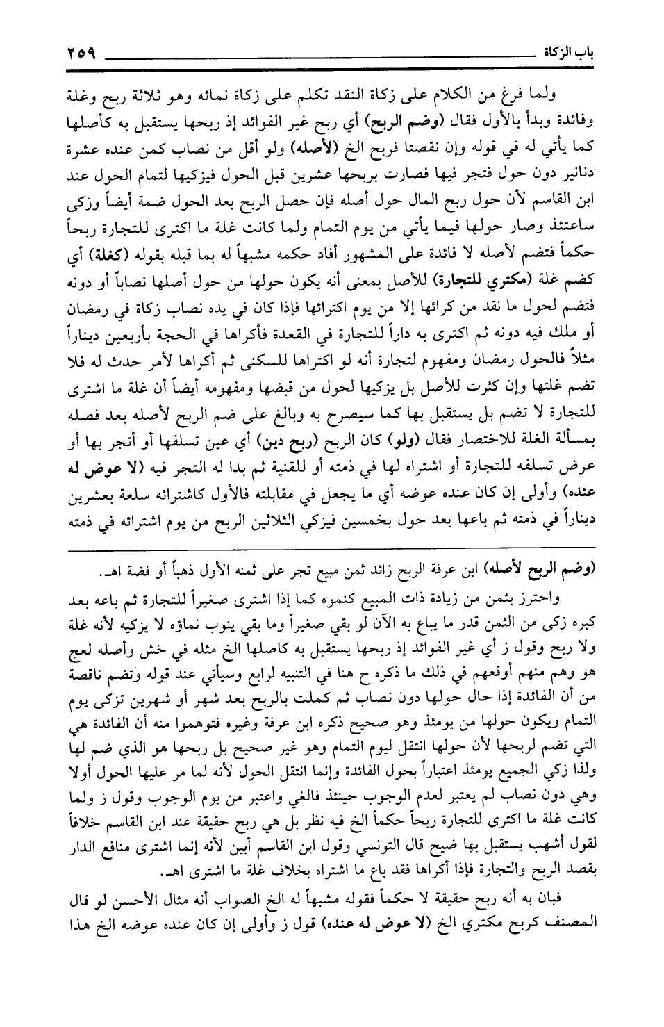 (وضم الربح لأصله) ابن عرفة الربح زائد ثمن مبيع تجر على ثمنه الأول ذهبًا أو فضة اهـ.