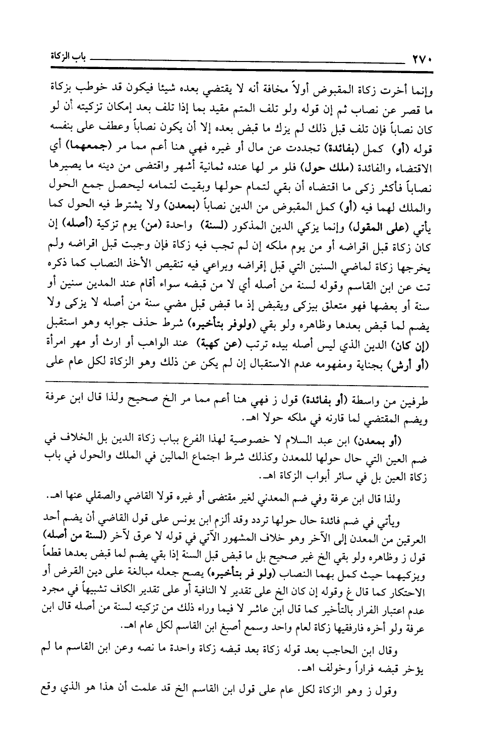 (أو بمعدن) ابن عبد السلام لا خصوصية لهذا الفرع بباب زكاة الدين بل الخلاف في ضم العين التي حال حولها للمعدن وكذلك شرط اجتماع المالين في الملك والحول في باب زكاة العين بل في سائر أبواب الزكاة اهـ.
