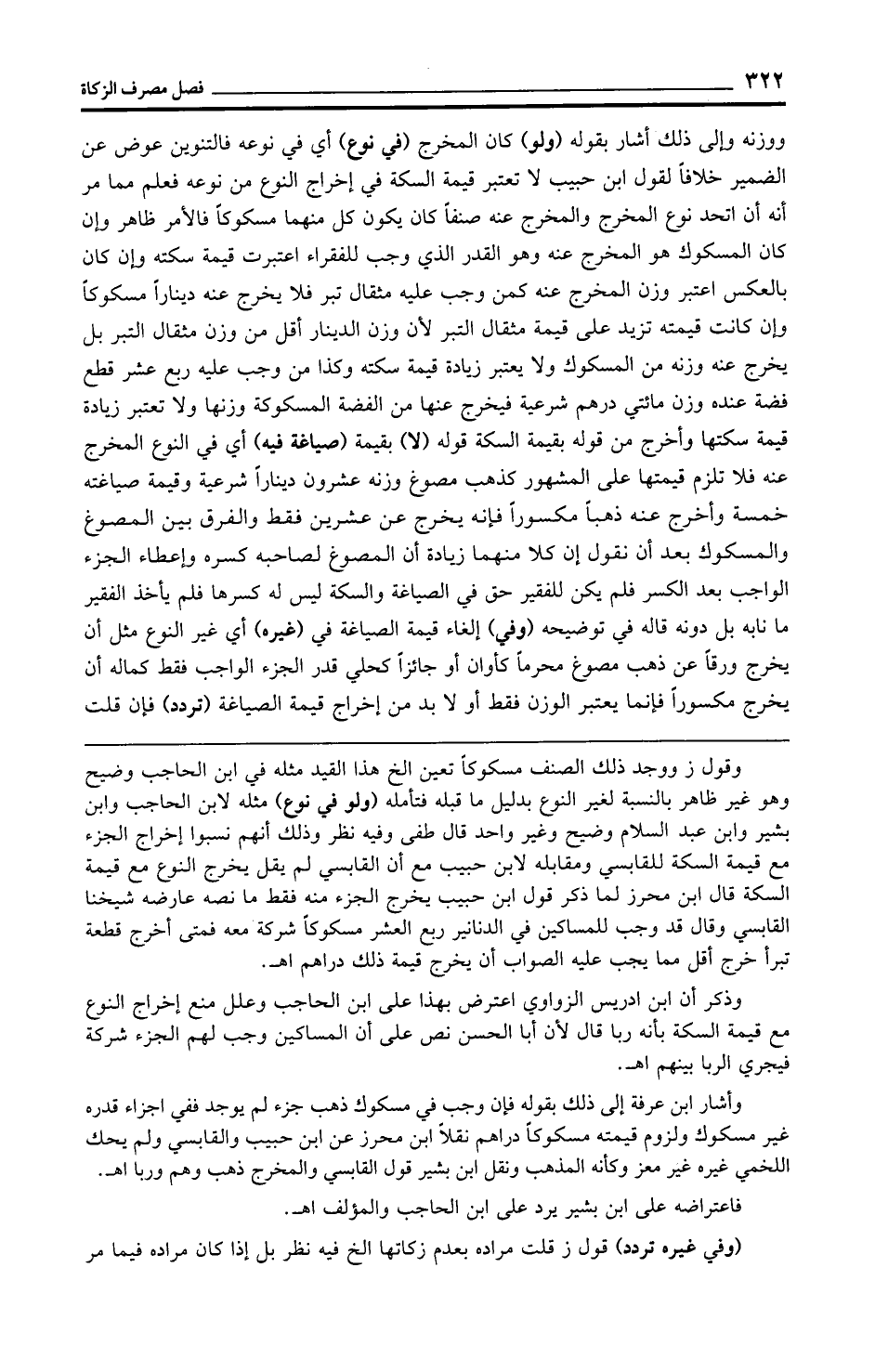 وذكر أن ابن إدريس الزواوي اعترض بهذا على ابن الحاجب وعلل منع إخراج النوع مع قيمة السكة بأنه ربا قال لأن أبا الحسن نص على أن المساكين وجب لهم الجزء شركة فيجري الربا بينهم اهـ.