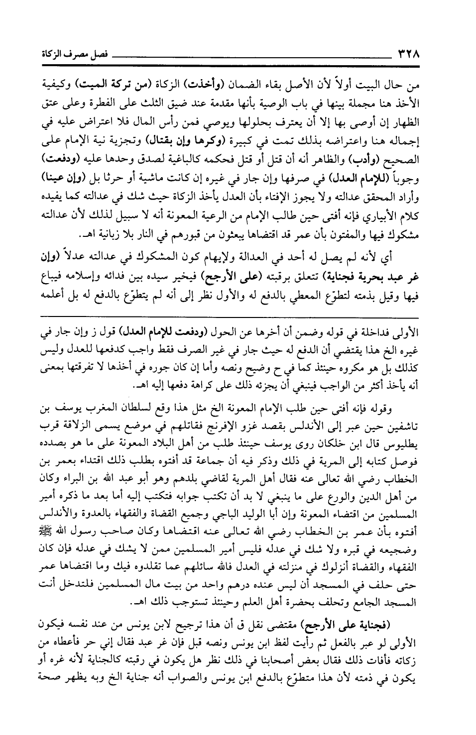 وقوله فإنه أفتى حين طلب الإمام المعونة الخ مثل هذا وقع لسلطان المغرب يوسف بن تاشفين حين عبر إلى الأندلس بقصد غزو الإفرنج فقاتلهم في موضع يسمى الزلاقة قرب بطليوس قال ابن خلكان روى يوسف حينئذ طلب من أهل البلاد المعونة على ما هو بصدده فوصل كتابه إلى المرية في ذلك وذكر فيه أن جماعة قد أفتوه بطلب ذلك اقتداء بعمر بن الخطاب رضي الله تعالى عنه فقال أهل المرية لقاضي بلدهم وهو أبو عبد الله بن البراء وكان من أهل الدين والورع على ما ينبغي لا بد أن تكتب جوابه فتكتب إليه أما بعد ما ذكره أمير المسلمين من اقتضاء المعونة وإن أبا الوليد الباجي وجميع القضاة والفقهاء بالعدوة والأندلس أفتوه بأن عمر بن الخطاب رضي الله تعالى عنه اقتضاها وكان صاحب رسول الله - صلى الله عليه وسلم - وضجيعه في قبره ولا شك في عدله فليس أمير المسلمين ممن لا يشك في عدله فإن كان الفقهاء والقضاة أنزلوك في منزلته في العدل فالله سائلهم عما تقلدوه فيك وما اقتضاها عمر حتى حلف في المسجد أن ليس عنده درهم واحد من بيت مال المسلمين فلتدخل أنت المسجد الجامع وتحلف بحضرة أهل العلم وحينئذ تستوجب ذلك اهـ.