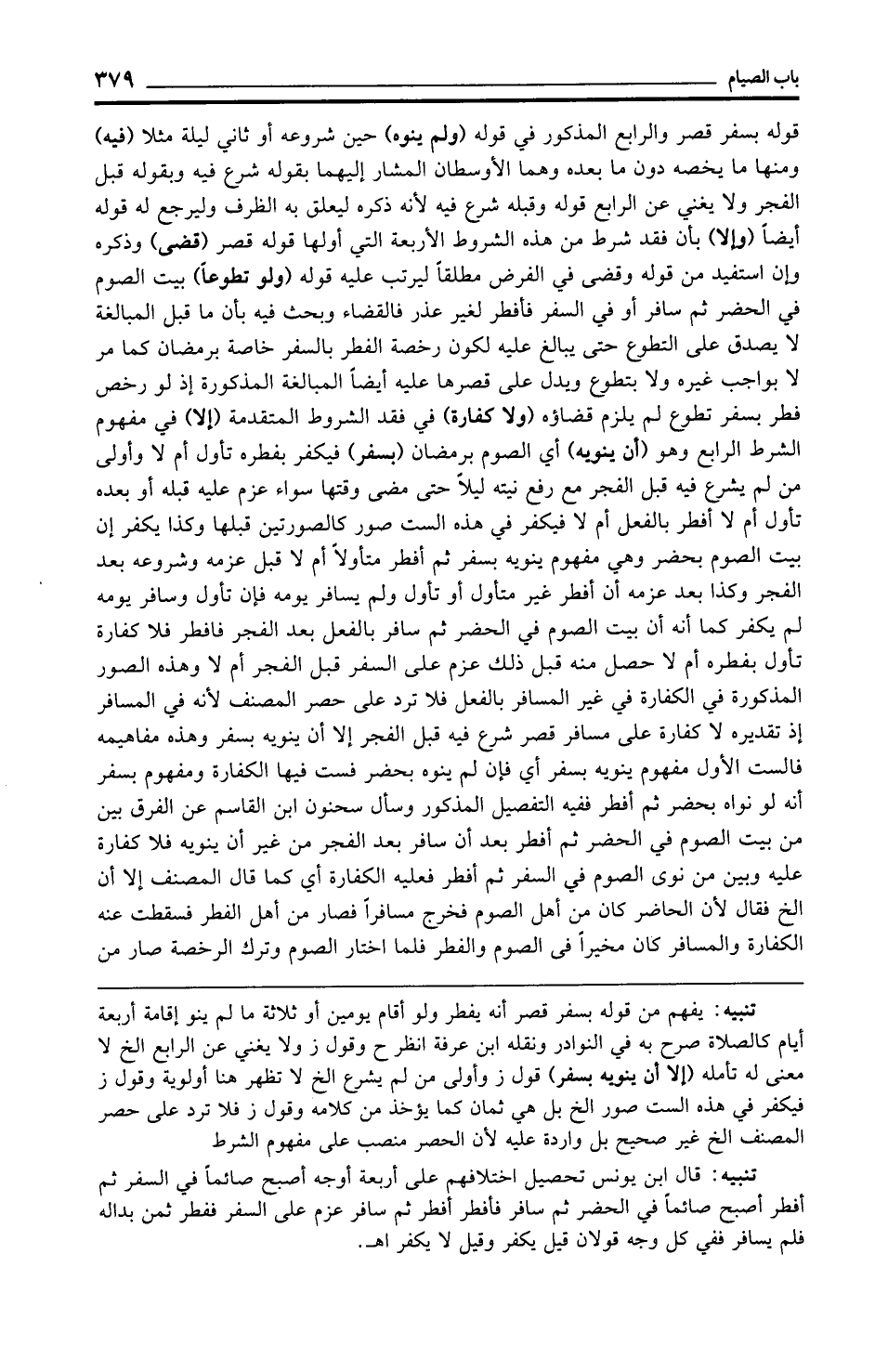 تنبيه: يفهم من قوله بسفر قصر أنه يفطر ولو أقام يومين أو ثلاثة ما لم ينو إقامة أربعة أيام كالصلاة صرح به في النوادر ونقله ابن عرفة انظر ح وقول ز ولا يغني عن الرابع الخ لا معنى له تأمله (إلا أن ينويه بسفر) قول ز وأولى من لم يشرع الخ لا تظهر هنا أولوية وقول ز فيكفر في هذه الست صور الخ بل هي ثمان كما يؤخذ من كلامه وقول ز فلا ترد على حصر المصنف الخ غير صحيح بل واردة عليه لأن الحصر منصب على مفهوم الشرط.