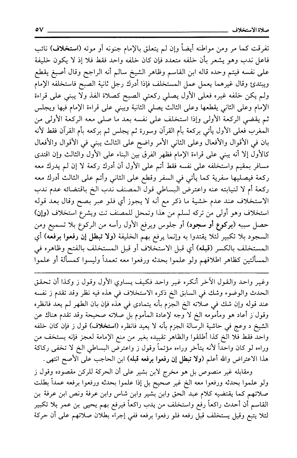 وغير واحد والقول الآخر أنكره غير واحد فكيف يساوي الأول وقول ز وكذا أن تحقق الحدث والوضوء وشك في السابق الخ ذكره الاستخلاف في هذه فيه نظر وقد تقدم ز نفسه عند قوله وإن شك في صلاته الخ الجزم بأنه يتمادى في هذه فإن بان الطهر لم يعد فانظره وقول از أعاد هو ومأمومه الخ لا وجه لإعادة المأموم بل صلاته صحيحة وقد تقدم هناك عن الشيخ د وعج في حاشية الرسالة الجزم بأنه لا يعيد فانظره (استخلاف) قول ز فإن كان خلفه واحد فقط فلا الخ كذا أطلقوا والظاهر تقييده بغير من منع الإمامة لعجز فإنه يستخف من وراءه لو كان واحدًا لأنه يتأخر وراءه مؤتمًا وقول ز واعترض البساطي الخ لا تخفى ركاكة هذا الاعتراض والله أعلم (ولا تبطل إن رفعوا برفعه قبله) ابن الحاجب على الأصح انتهى.