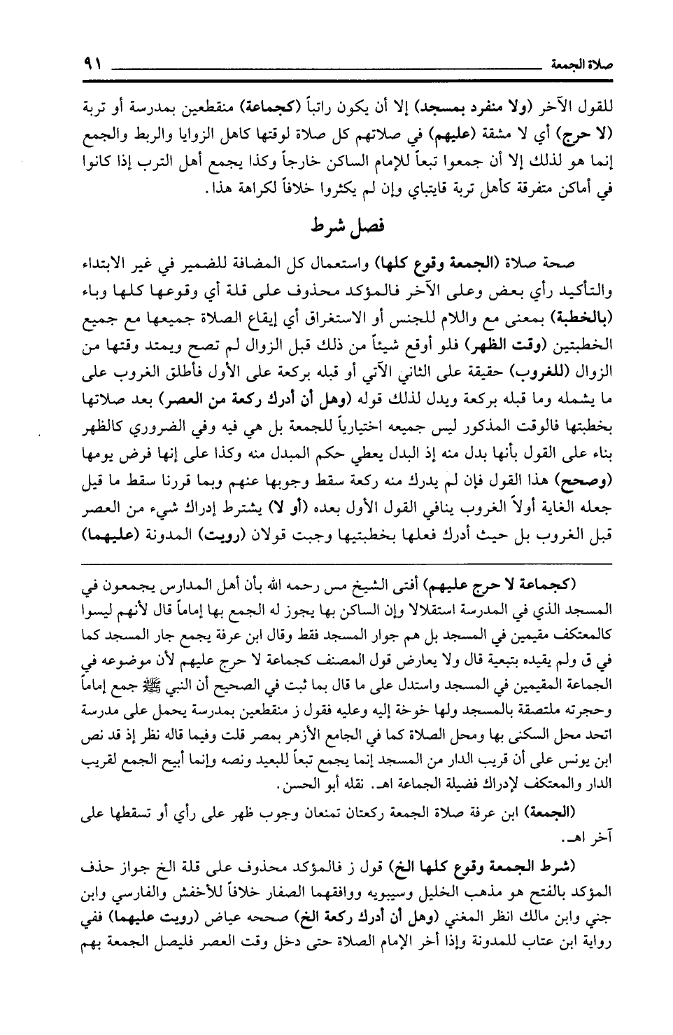 (الجمعة) ابن عرفة صلاة الجمعة ركعتان تمنعان وجوب ظهر على رأي أو تسقطها على آخر اهـ.