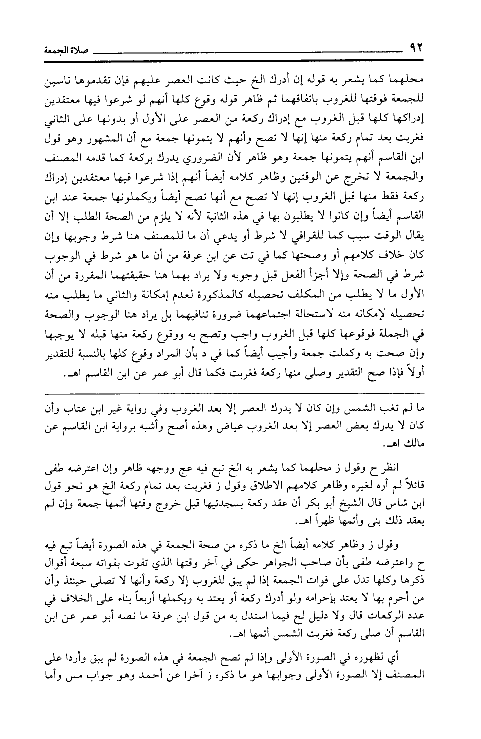 وقول ز وظاهر كلامه أيضًا الخ ما ذكره من صحة الجمعة في هذه الصورة أيضًا تبع فيه ح واعترضه طفى بأن صاحب الجواهر حكى في آخر وقتها الذي تفوت بفواته سبعة أقوال ذكرها وكلها تدل على فوات الجمعة إذا لم يبق للغروب إلا ركعة وأنها لا تصلى حينئذ وأن من أحرم بها لا يعتد بإحرامه ولو أدرك ركعة أو يعتد به ويكملها أربعًا بناء على الخلاف في عدد الركعات قال ولا دليل لح فيما استدل به من قول ابن عرفة ما نصه أبو عمر عن ابن القاسم أن صلى ركعة فغربت الشمس أتمها اهـ.