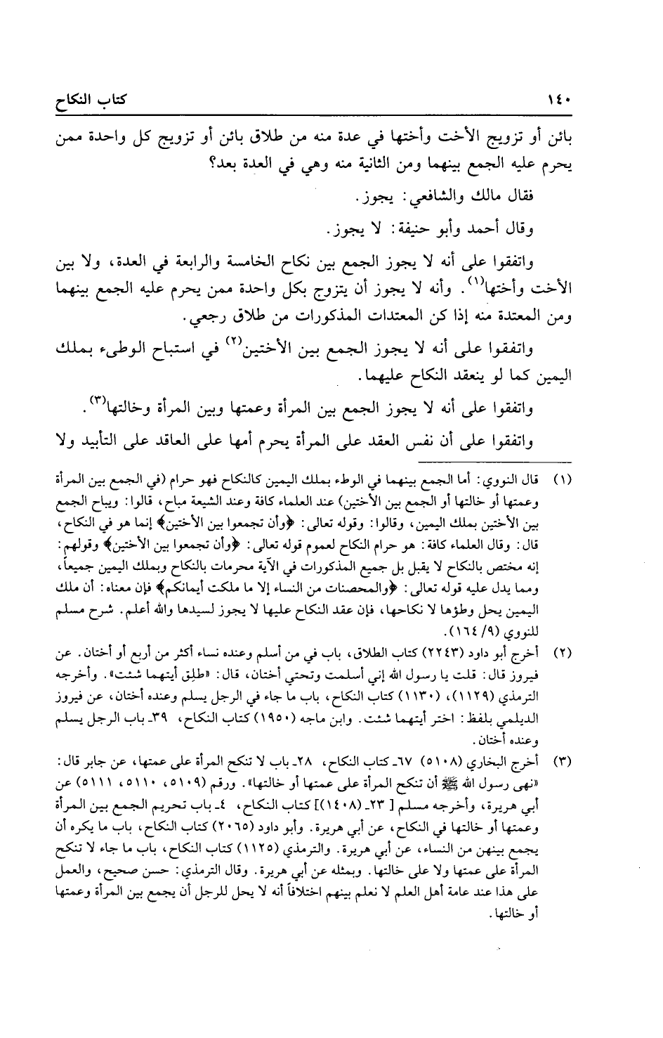 وَاتَّفَقُوا على أَنه لَا يجوز الْجمع بَين نِكَاح الْخَامِسَة وَالرَّابِعَة فِي الْعدة، وَلَا بَين الْأُخْت وَأُخْتهَا. وَأَنه لَا يجوز أَن يتَزَوَّج بِكُل وَاحِدَة مِمَّن يحرم عَلَيْهِ الْجمع بَينهمَا وَمن الْمُعْتَدَّة مِنْهُ إِذا كن المعتدات الْمَذْكُورَات من طَلَاق رَجْعِيّ.