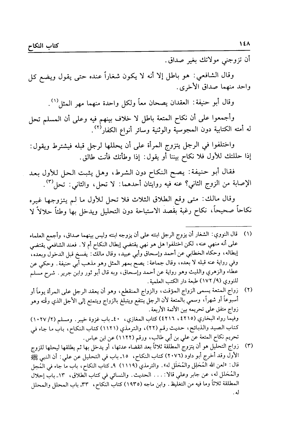 وَأَجْمعُوا على أَن نِكَاح الْمُتْعَة بَاطِل لَا خلاف بَينهم فِيهِ وعَلى أَن الْمُسلم تحل لَهُ أمته الْكِتَابِيَّة دون الْمَجُوسِيَّة والوثنية وَسَائِر أَنْوَاع الْكفَّار.