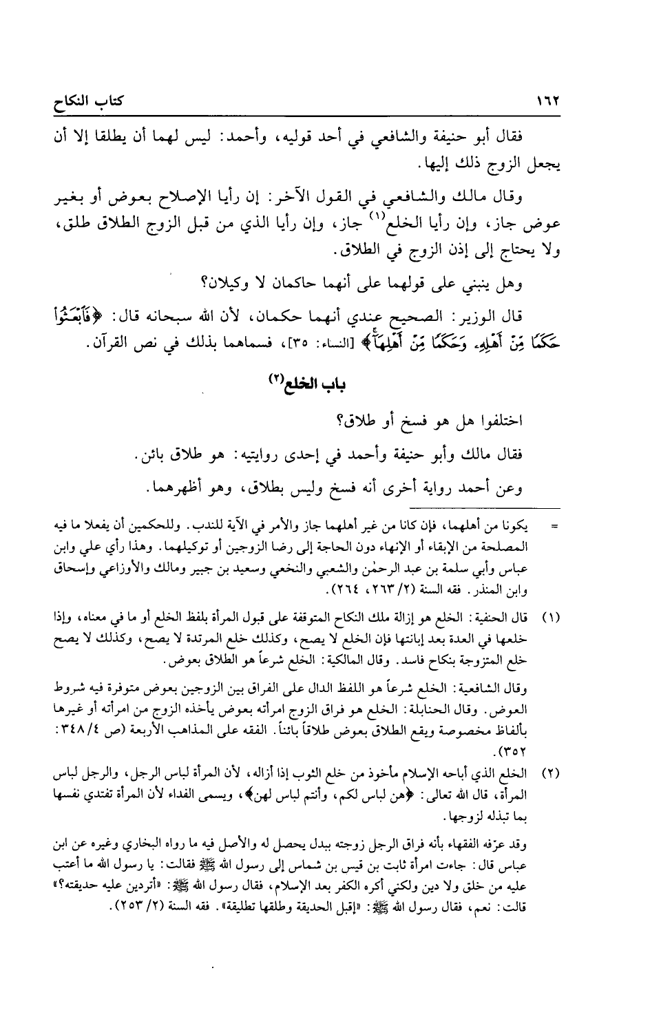 قَالَ الْوَزير: الصَّحِيح عِنْدِي أَنَّهُمَا حكمان، لِأَن الله سُبْحَانَهُ قَالَ {فَابْعَثُوا حكما من أَهله وَحكما من أَهلهَا} [النِّسَاء: 35] فسماهما بذلك فِي نَص الْقُرْآن.
