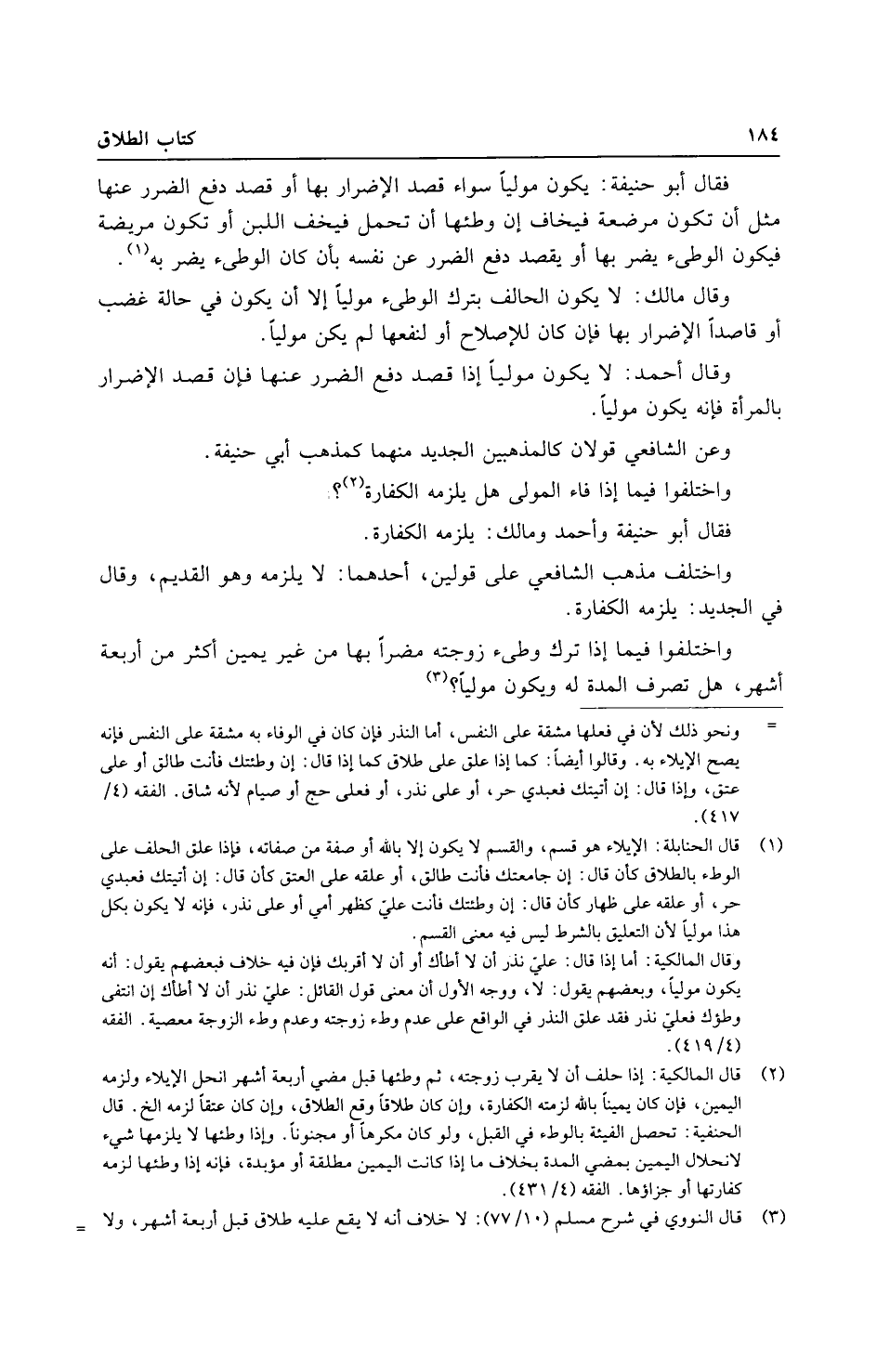 وَاخْتلفُوا فِيمَا إِذا ترك وطىء زَوجته مضرا بهَا من غير يَمِين أَكثر من أَرْبَعَة أشهر، هَل تصرف الْمدَّة لَهُ وَيكون موليا؟
