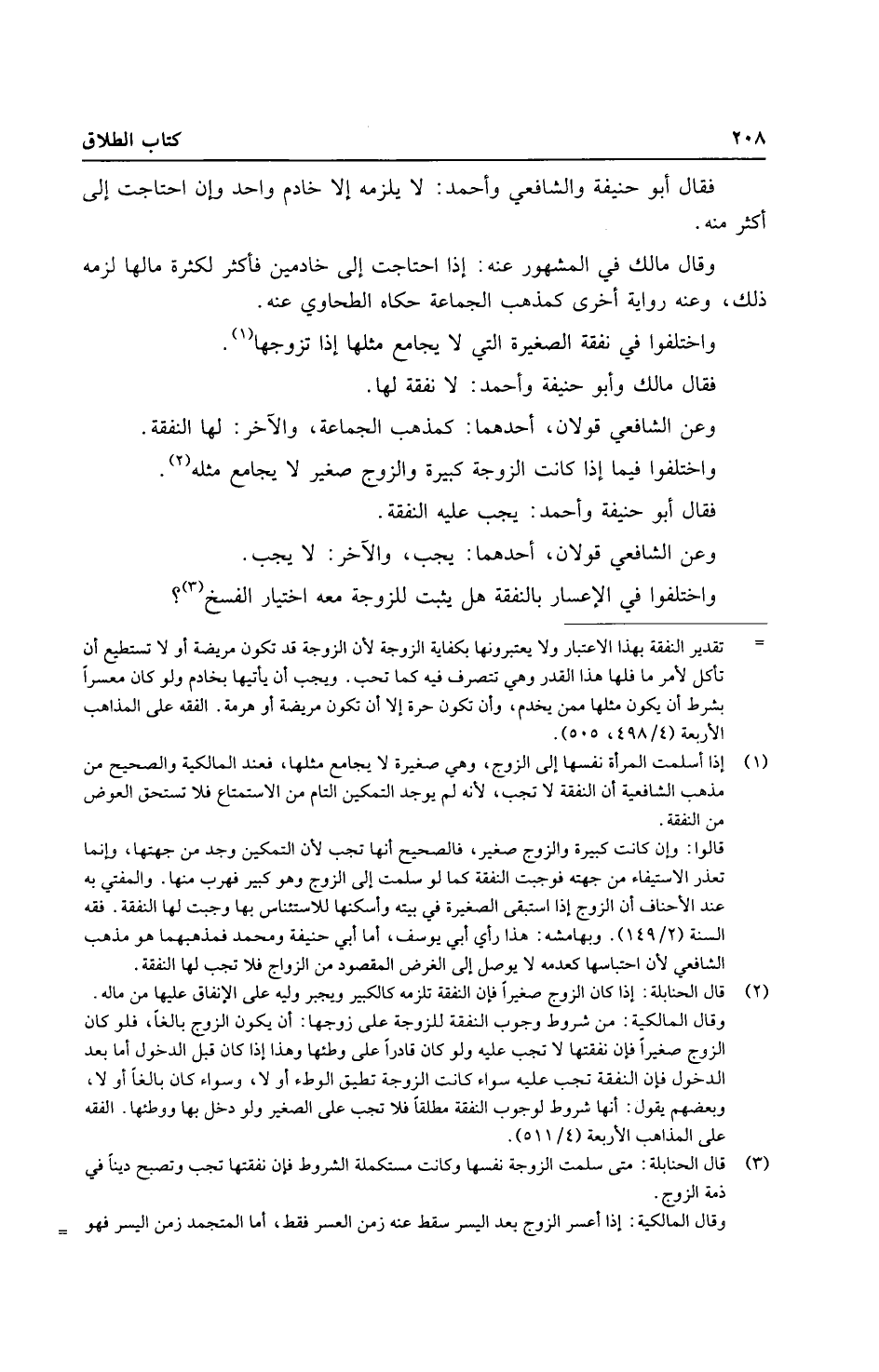 وَاخْتلفُوا فِي الْإِعْسَار بِالنَّفَقَةِ هَل يثبت للزَّوْجَة مَعَه اخْتِيَار الْفَسْخ؟