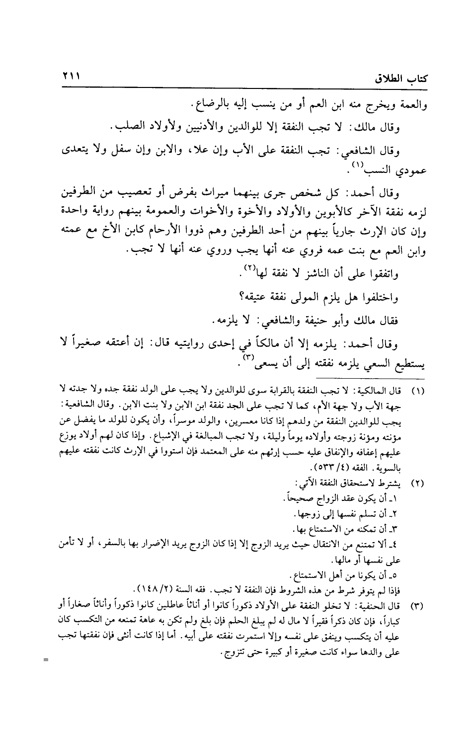 وَقَالَ مَالك: لَا تجب النَّفَقَة إِلَّا للْوَالِدين والأدنيين ولأولاد الصلب.