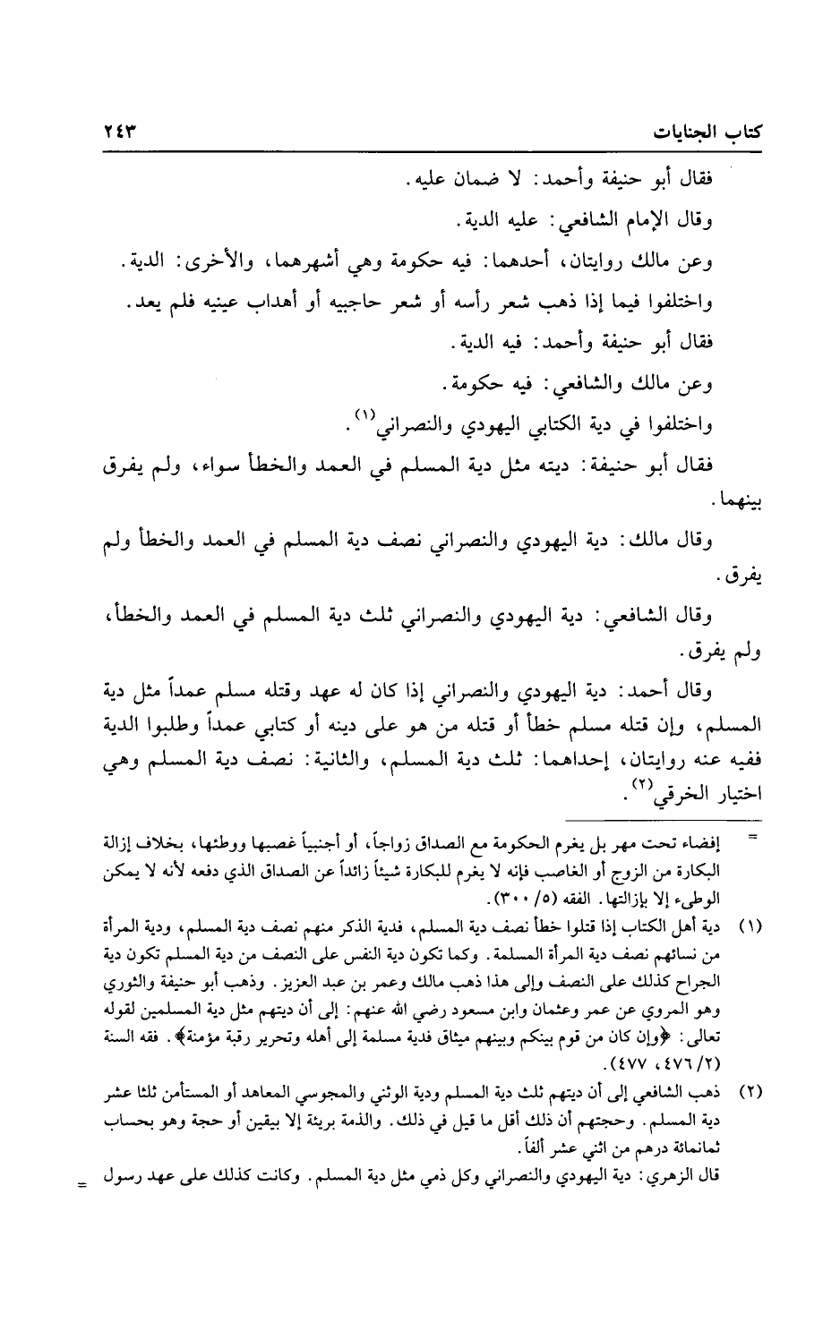 وَاخْتلفُوا فِي دِيَة الْكِتَابِيّ الْيَهُودِيّ وَالنَّصْرَانِيّ.