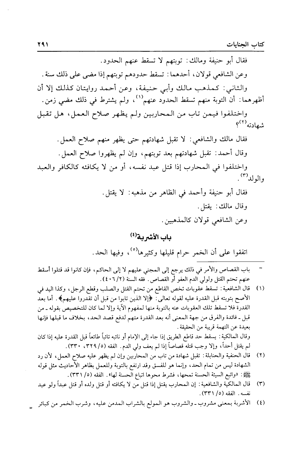 وَاخْتلفُوا فِي الْمُحَارب إِذا قتل عبد نَفسه، أَو من لَا يُكَافِئهُ كالكافر وَالْعَبْد وَالْولد.