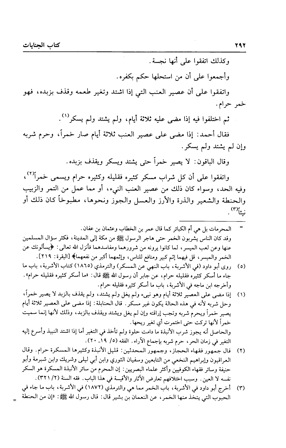 وَاتَّفَقُوا على أَن عصير الْعِنَب الَّتِي إِذا اشْتَدَّ وَتغَير طعمه وَقذف بزبده، فَهُوَ خمر حرَام.