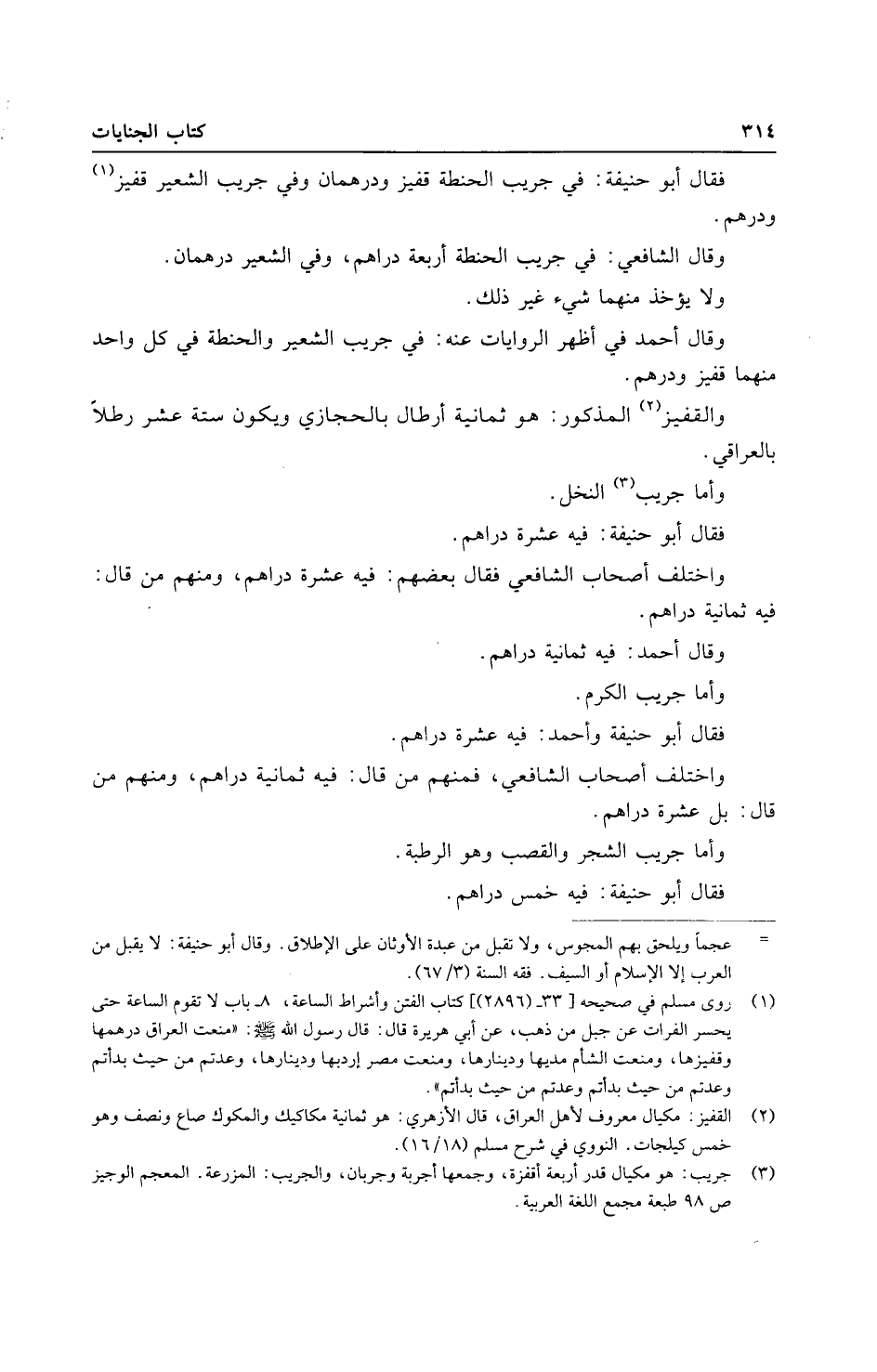 وَقَالَ أَحْمد فِي اظهر الرِّوَايَات عَنهُ: فِي جريب الشّعير وَالْحِنْطَة فِي كل وَاحِد مِنْهُمَا قفيز وَدِرْهَم.