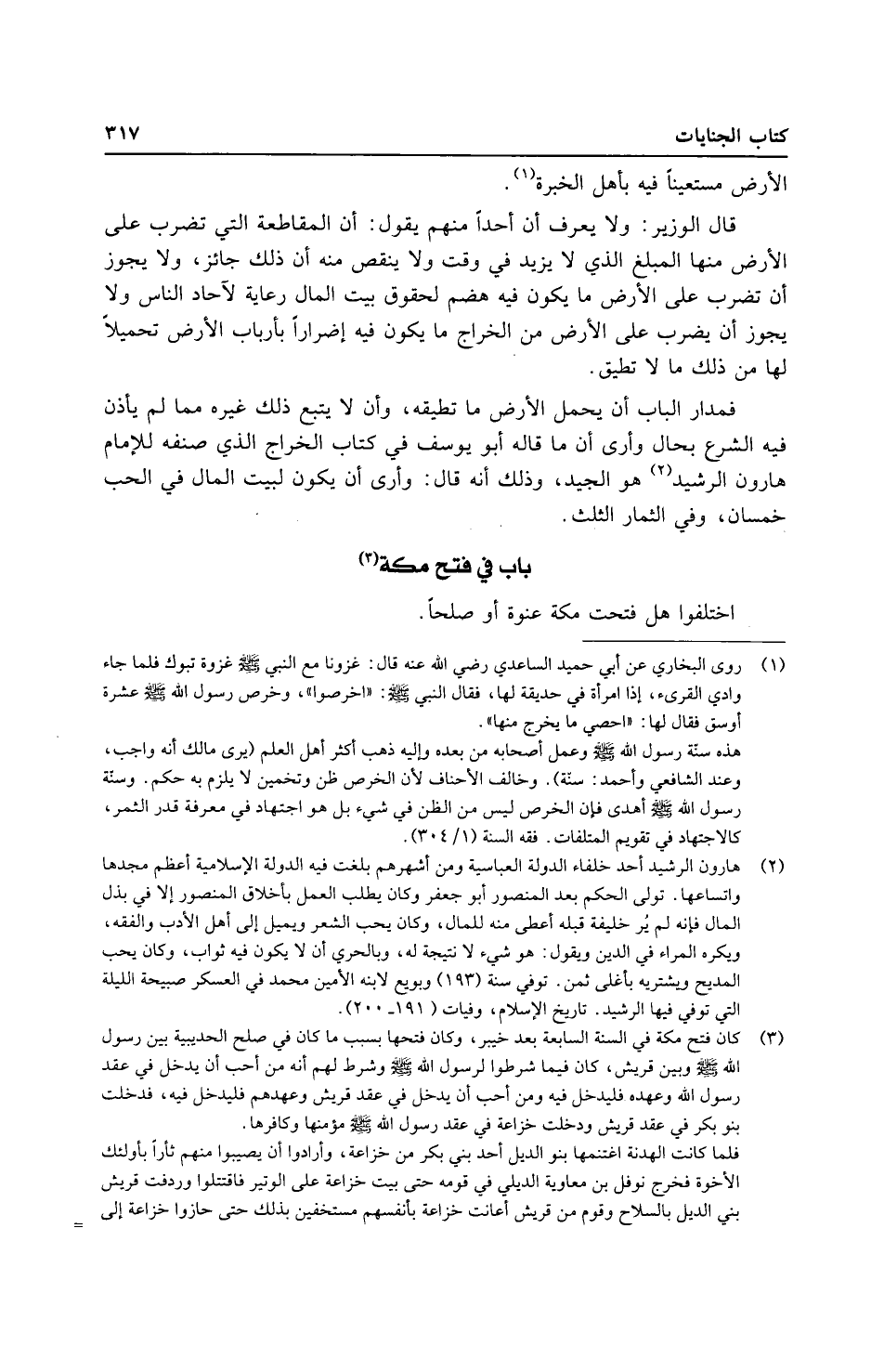 فمدار الْبَاب أَن يحمل الأَرْض مَا تُطِيقهُ، وَأَن لَا يتبع ذَلِك غَيره مِمَّا لم يَأْذَن فِيهِ الشَّرْع بِحَال وَأرى أَن مَا قَالَه أَبُو يُوسُف فِي كتاب الْخراج الَّذِي صنفه للْإِمَام هَارُون الرشيد هُوَ الْجيد، وَذَلِكَ أَنه قَالَ: وَأرى أَن يكون لبيت المَال فِي الْحبّ خمسان وَفِي الثِّمَار الثُّلُث.