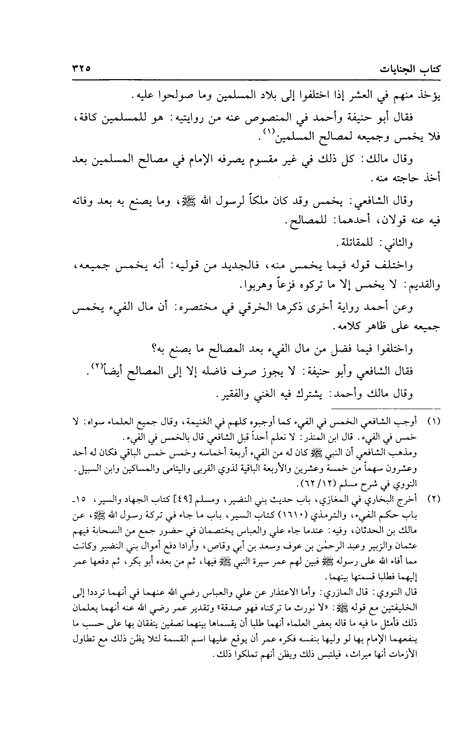 وَقَالَ مَالك: كل ذَلِك فِي غير مقسوم يصرفهُ الإِمَام فِي مصَالح الْمُسلمين بعد أَخذ حَاجته مِنْهُ.