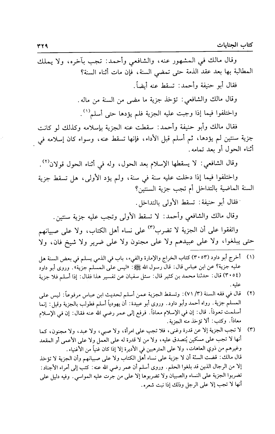 فَقَالَ مَالك وَأَبُو حنيفَة وَأحمد: سَقَطت عَنهُ الْجِزْيَة بِإِسْلَامِهِ وَكَذَلِكَ لَو كَانَت جِزْيَة سنتَيْن لم يؤدها، ثمَّ أسلم قبل الْأَدَاء، فَإِنَّهَا تسْقط عَنهُ، وَسَوَاء كَانَ إِسْلَامه فِي أثْنَاء الْحول أَو بعد تَمَامه.