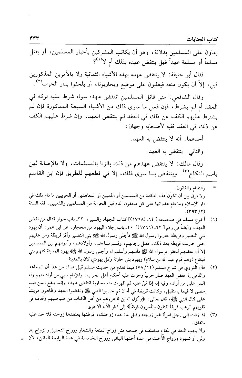 وَقَالَ الشَّافِعِي: مَتى قَاتل الْمُسلمين انْتقض عَهده سَوَاء شَرط عَلَيْهِ تَركه فِي العقد أم لم يشرط، فَإِن فعل مَا سوى ذَلِك من الْأَشْيَاء السَّبْعَة الْمَذْكُورَة فَإِن لم يشْتَرط عَلَيْهِم الْكَفّ عَن ذَلِك فِي العقد لم ينْتَقض الْعَهْد، وَإِن شَرط عَلَيْهِم الْكَفّ عَن ذَلِك فِي العقد فَفِيهِ لأَصْحَابه وَجْهَان: