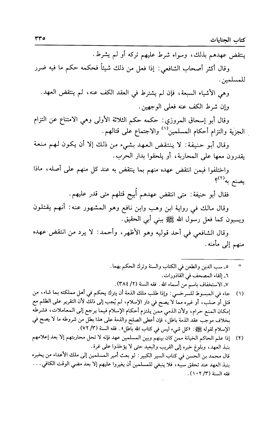 وَهِي الْأَشْيَاء السَّبْعَة، فَإِن لم يشْتَرط فِي العقد الْكَفّ عَنهُ، لم ينْتَقض الْعَهْد.