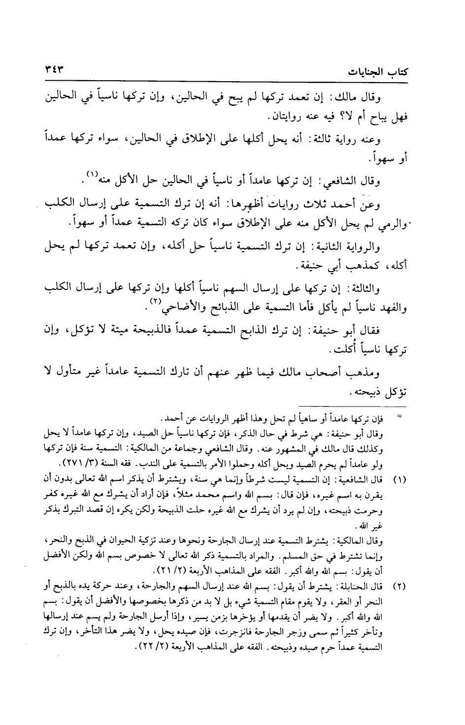 وَقَالَ الشَّافِعِي إِن تَركهَا عَامِدًا أَو نَاسِيا فِي الْحَالين حل الْأكل مِنْهُ.