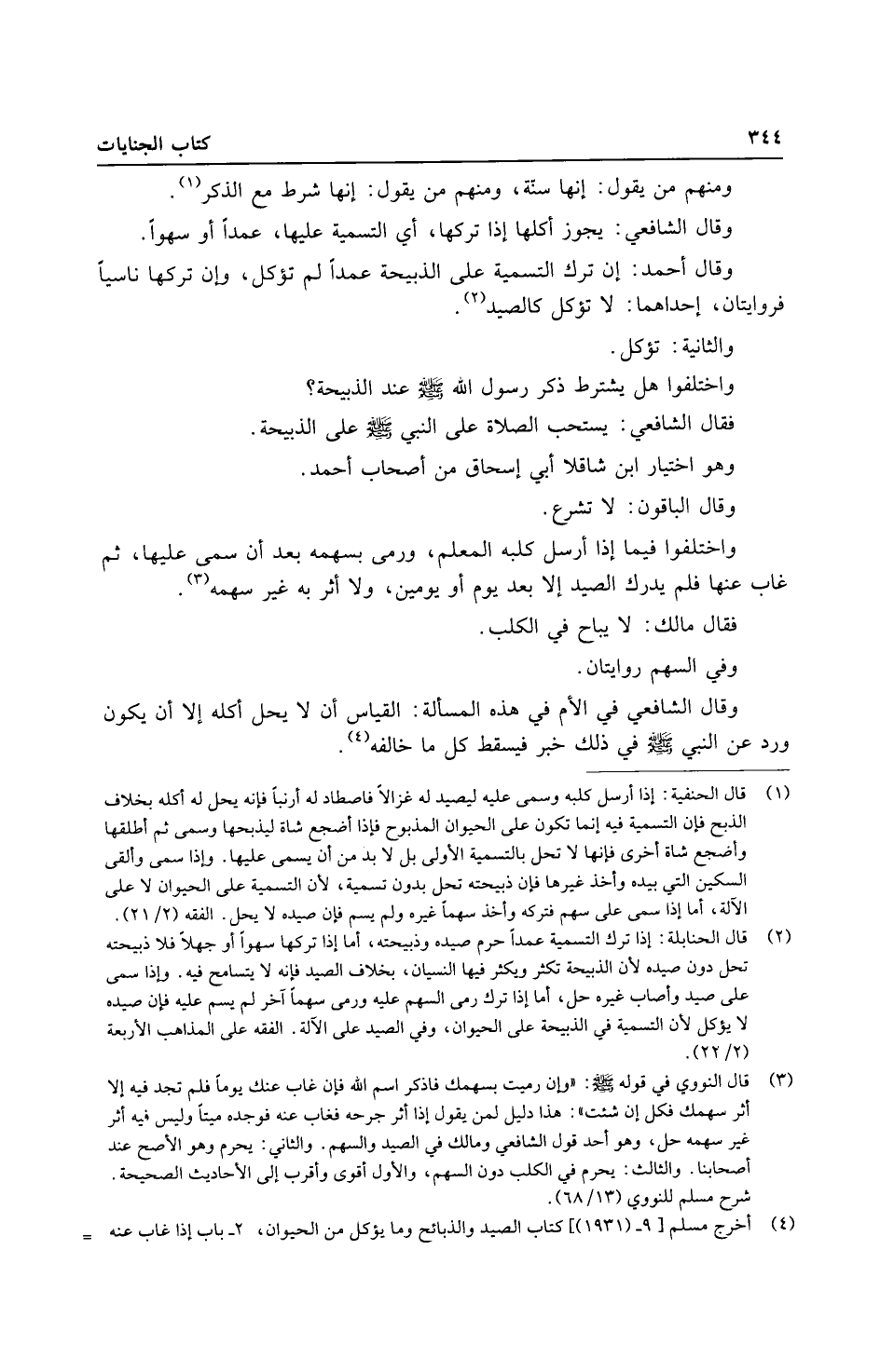 وَاخْتلفُوا فِيمَا إِذا أرسل كَلْبه الْمعلم، وَرمى بسهمه بعد أَن سمى عَلَيْهَا، ثمَّ غَابَ عَنْهَا فَلم يدْرك الصَّيْد إِلَّا بعد يَوْم أَو يَوْمَيْنِ، وَلَا أثر بِهِ غير سَهْمه.