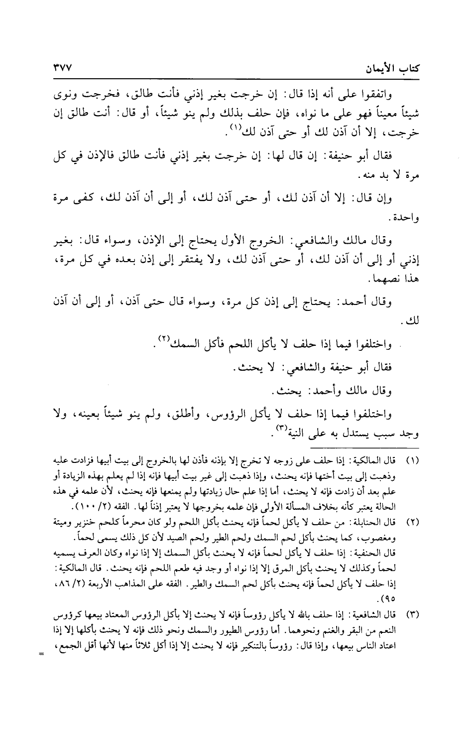 وَقَالَ مَالك وَالشَّافِعِيّ: الْخُرُوج الأول يحْتَاج إِلَى الْإِذْن، وَسَوَاء قَالَ: بِغَيْر إذني أَو إِلَى أَن آذن لَك، أَو حَتَّى آذن لَك، وَلَا يفْتَقر إِلَى إِذن بعده فِي كل مرّة، هَذَا نصهما.