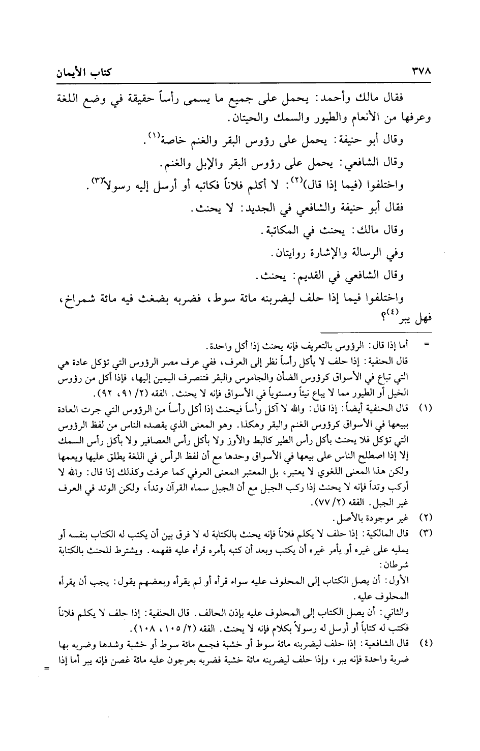 فَقَالَ مَالك وَأحمد: يحمل على جَمِيع مَا يُسمى رَأْسا حَقِيقَة فِي وضع اللُّغَة وَعرفهَا من الْأَنْعَام والطيور والسمك وَالْحِيتَان.