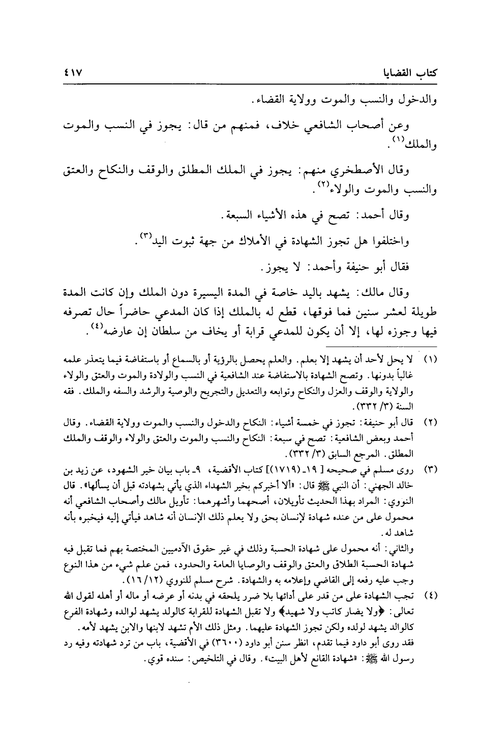 وَالدُّخُول وَالنّسب وَالْمَوْت وَولَايَة الْقَضَاء.