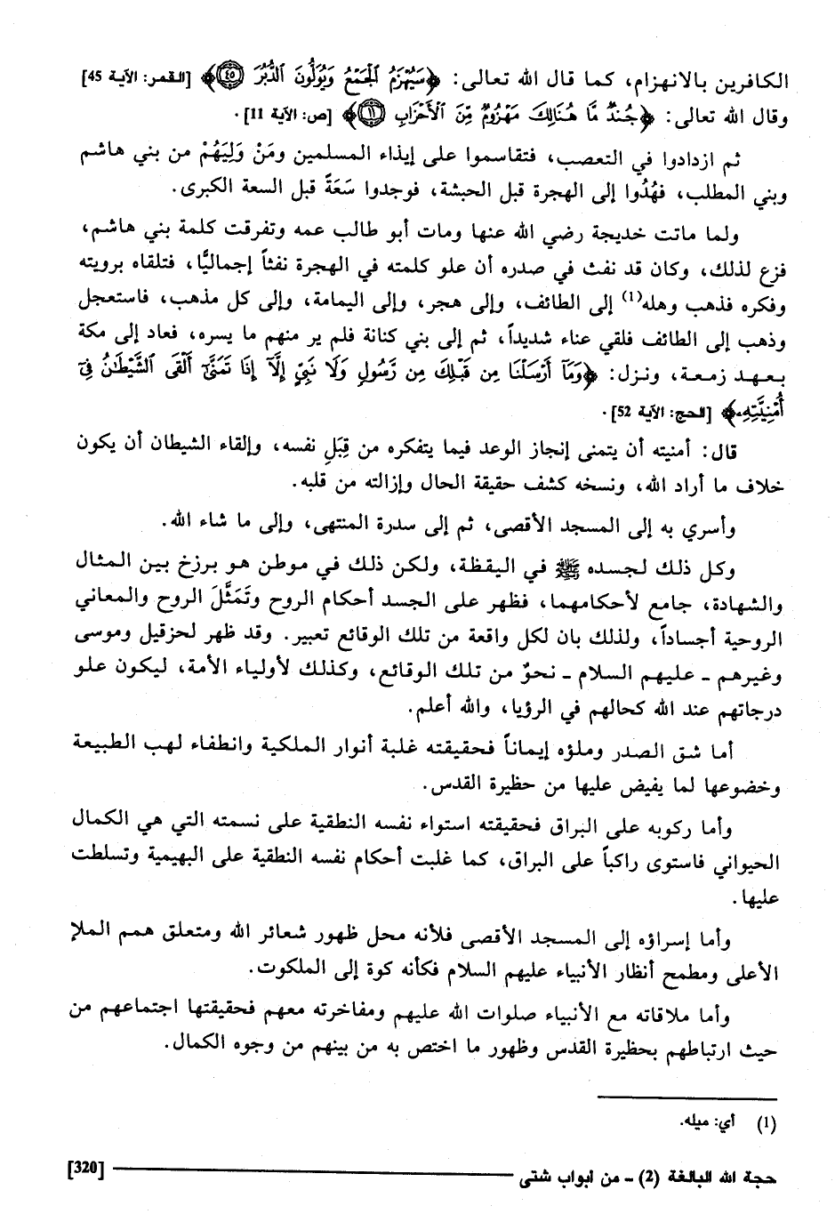 وَأما إسراؤه إِلَى الْمَسْجِد الْأَقْصَى فَلِأَنَّهُ مَحل ظُهُور شَعَائِر الله ومتعلق همم الْمَلأ الْأَعْلَى ومطمح أنظار الْأَنْبِيَاء عَلَيْهِم السَّلَام فَكَأَنَّهُ كوَّة إِلَى الملكوت.