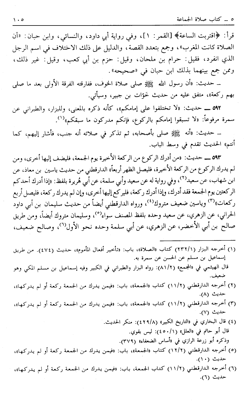 5 أخرجه الدارقطني "2/12" كتاب الجمعة: باب فيمن يدرك من الجمعة ركعة أو لم يدركها، حديث "10".