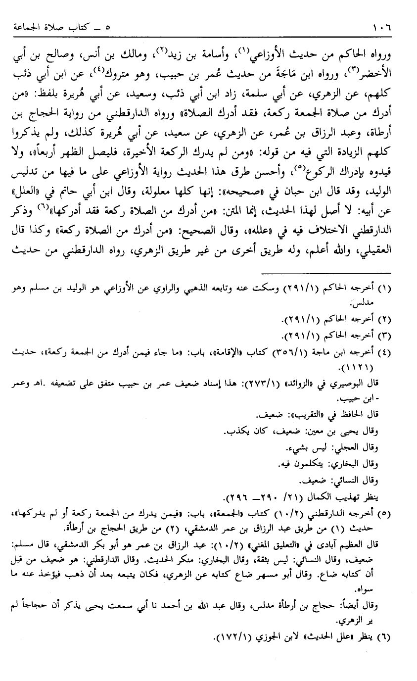 5 أخرجه الدارقطني "2/10" كتاب الجمعة: باب فيمن يدرك من الجمعة ركعة أو لم يدركها، حديث "1" من طريق عبد الرزاق بن عمر الدمشقي، "2" من طريق الحجاج بن أرطأة.