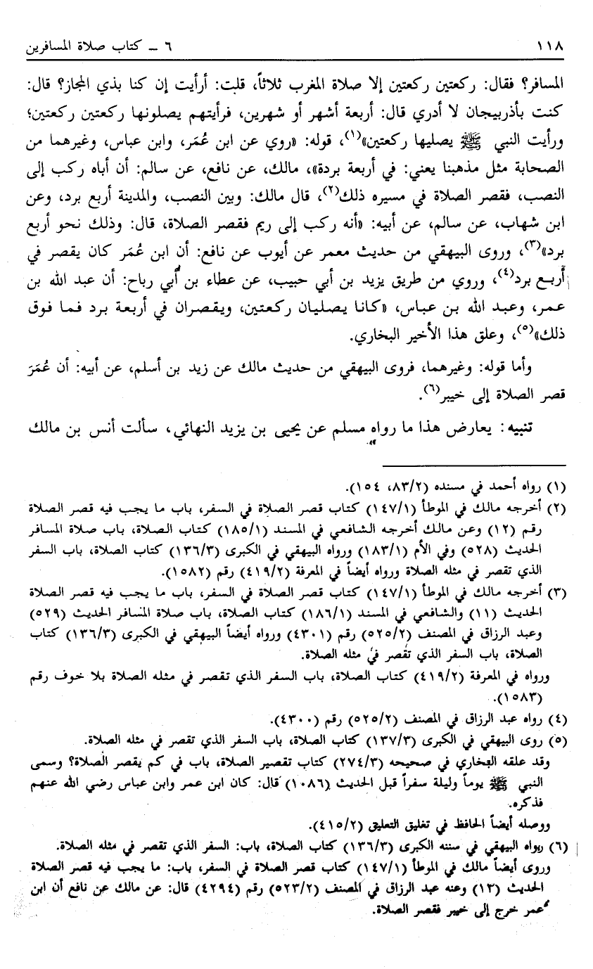 5 روى البيهقي في الكبرى "3/137" كتاب الصلاة، باب السفر الذي تقصر في مثله الصلاة.