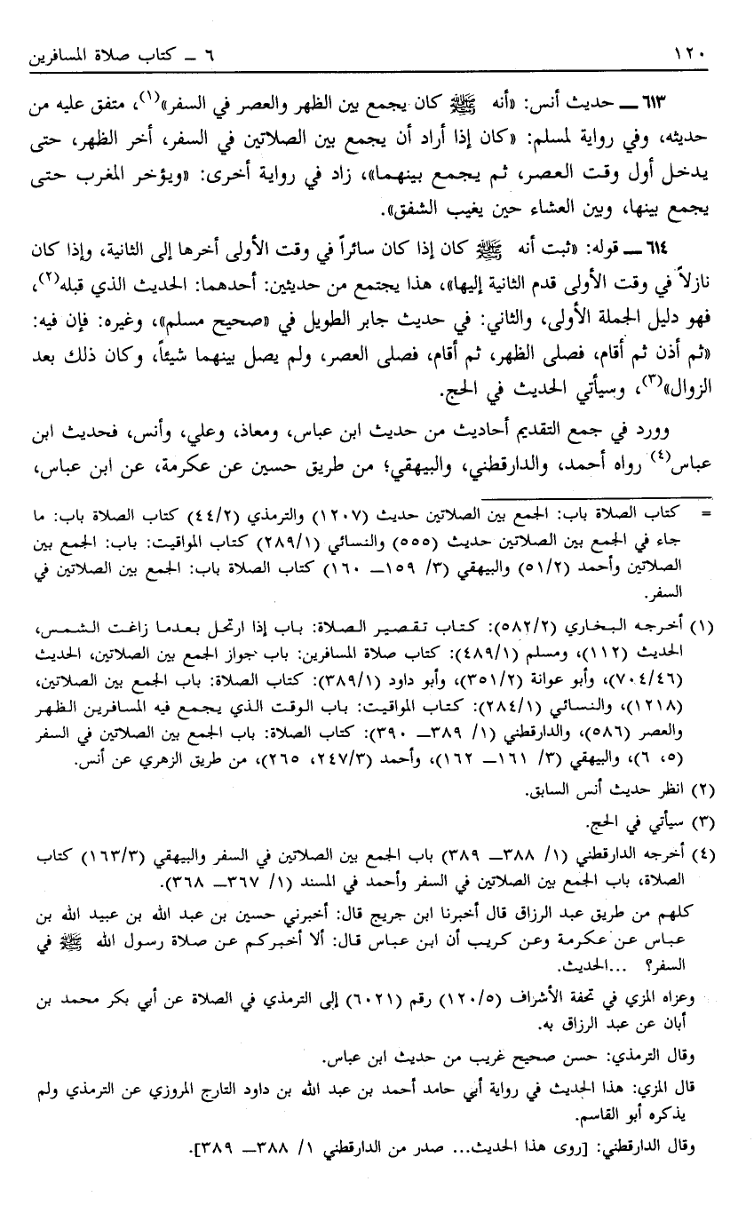 4 أخرجه الدارقطني "1/388- 389" باب الجمع بين الصلاتين في السفر، والبيهقي "3/163" كتاب الصلاة، باب الجمع بين الصلاتين في السفر، وأحمد في المسند "1/367- 368".