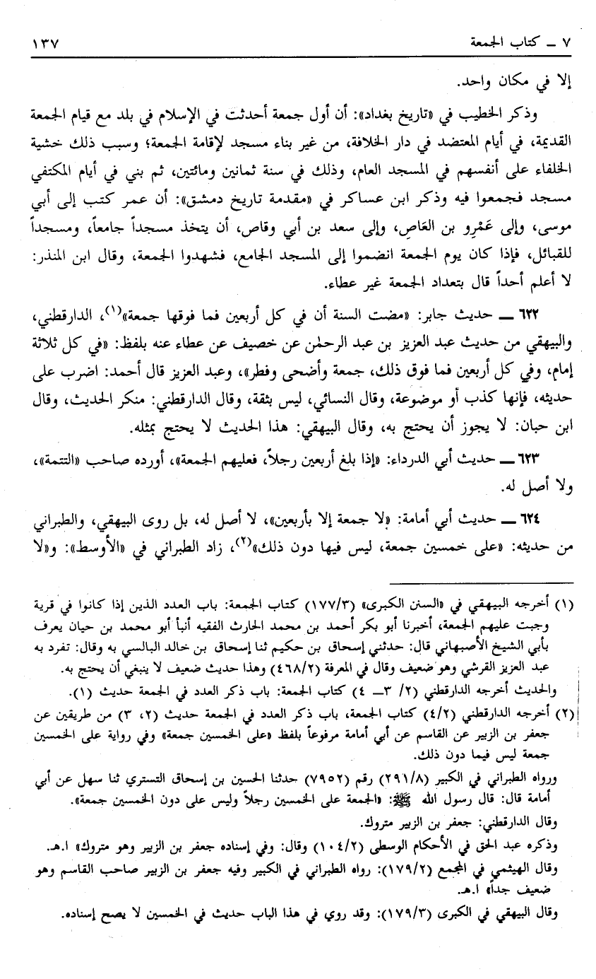 624 - حَدِيثُ أَبِي أُمَامَةَ لَا جُمُعَةَ إلَّا بِأَرْبَعِينَ لَا أَصْلَ لَهُ بَلْ رَوَى الْبَيْهَقِيُّ وَالطَّبَرَانِيُّ مِنْ حَدِيثِهِ "عَلَى خَمْسِينَ جمعة ليس فيها دُونَ ذَلِكَ"2 زَادَ الطَّبَرَانِيُّ فِي الْأَوْسَطِ وَلَا