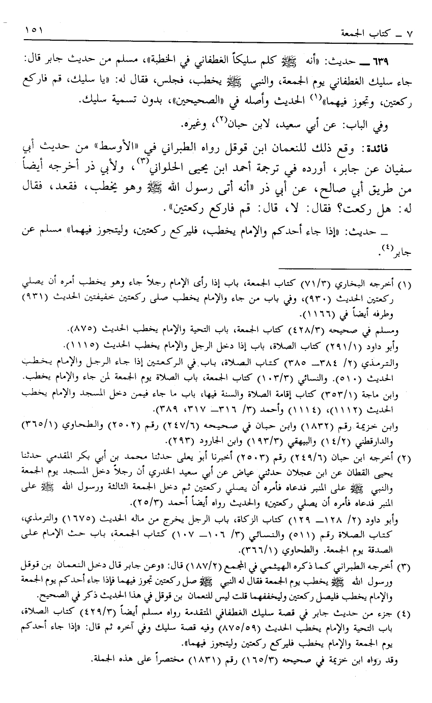 حَدِيثُ إذَا جَاءَ أَحَدُكُمْ وَالْإِمَامُ يَخْطُبُ فَلْيَرْكَعْ رَكْعَتَيْنِ وَلْيَتَجَوَّزْ فِيهِمَا مُسْلِمٌ عَنْ جَابِرٍ4.