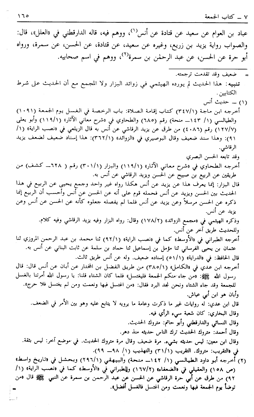 2 أخرجه أبو داود الطيالسي "1/142- منحة" والبيهقي "1/296" وبحشل في "تاريخ واسط" "ص 158" والعقيلي في "الضعفاء" "2/167" والطبراني في "الأوسط" كما في "نصب الراية" "1/92" من طرق عن أبي حرة الرقاشي عن الحسن عن عبد الرحمن بن سمرة عن النبي صَلَّى اللَّهُ عَلَيْهِ وَسَلَّمَ قال: "من توضأ يوم الجمعة فبها ونعمت ومن اغتسل فالغسل أفضل"..................=