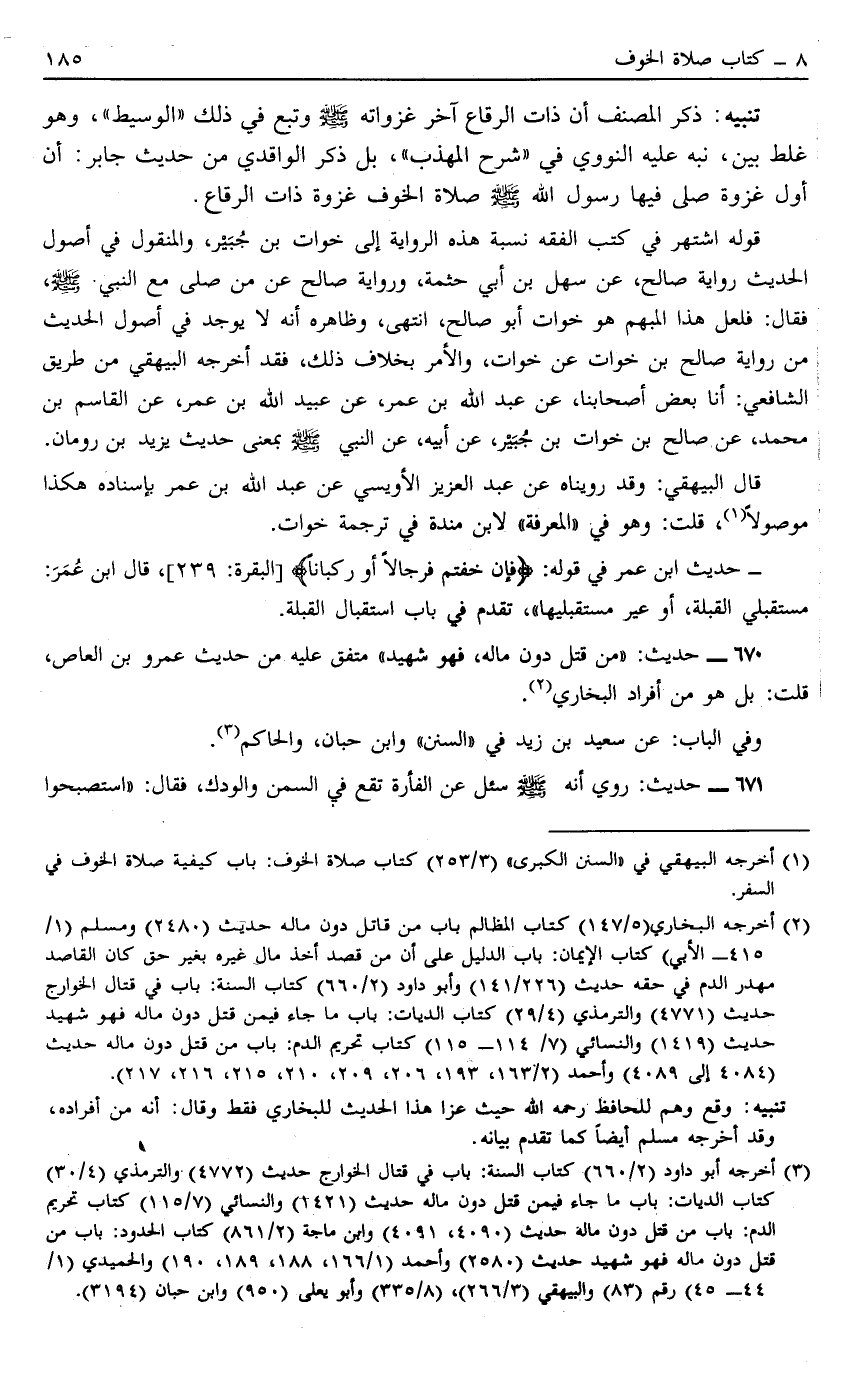 1 أخرجه البيهقي في "السنن الكبرى" "3/253" كتاب صلاة الخوف: باب كيفية صلاة الخوف في السفر.